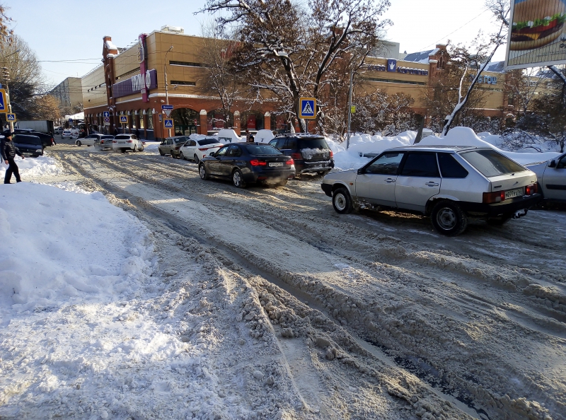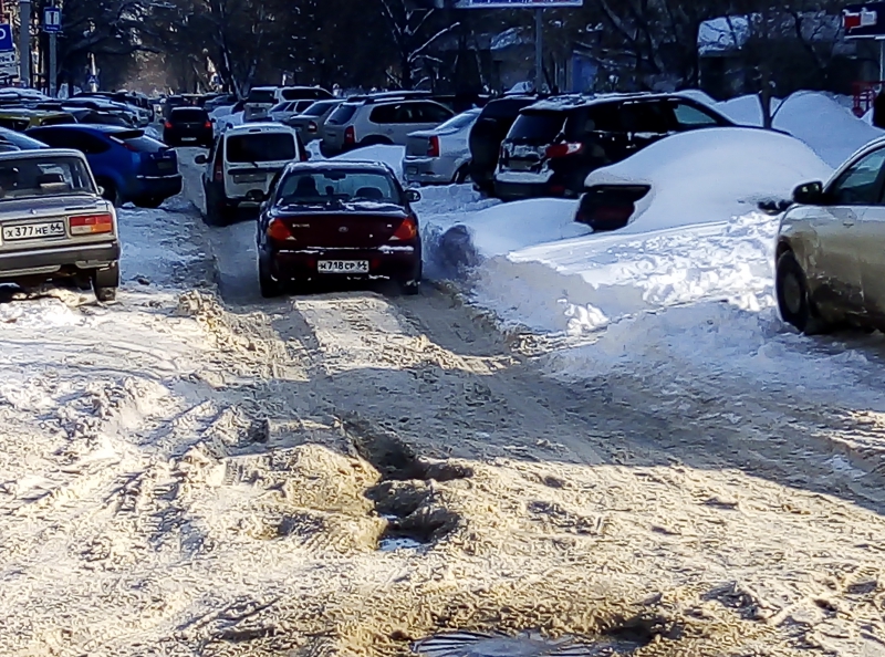 В некоторых местах обзор на перекрестках закрывают высокие сугробы, превращая движение по дороге в своеобразную русскую рулетку. Движение по этим улицам всегда оживленное, а в случае затора на улицах Астраханской или Рахова они могли бы разгрузить основные транспортные артерии. Но пока снегоуборочная техника обходит эти дороги стороной, а машины продолжают накатывать ледяную колею.