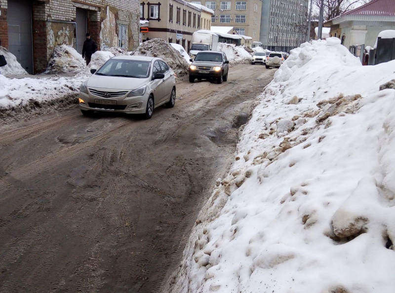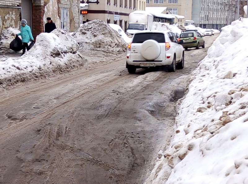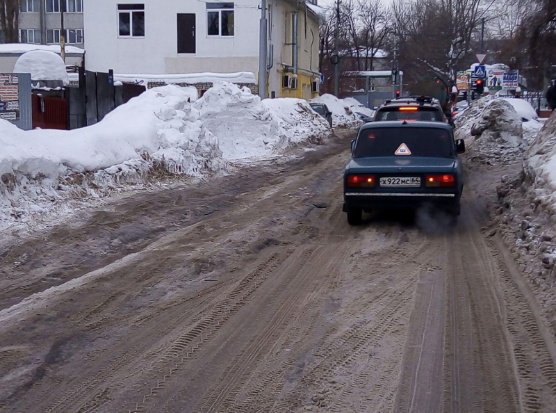Наледь заставляет водителей двигаться в один ряд по улице Крайней