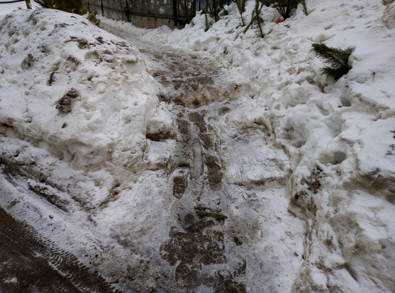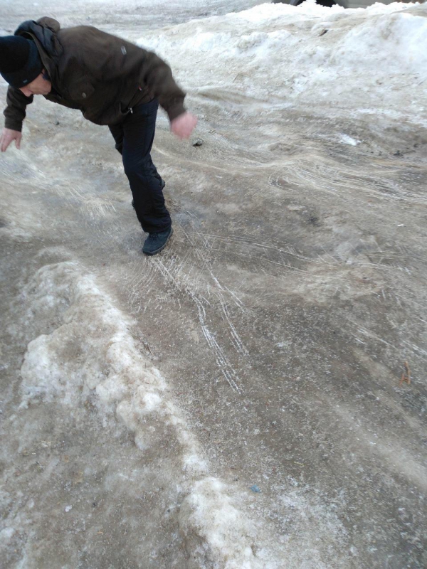 Улица Зоологическая - небольшая внутриквартальная дорога - скорее напоминает ледяную горку, по которой вынуждены передвигаться пешеходы вместе с автомобилями. В некоторых местах кажется невозможно пройти, не то что проехать, но местные жители вынуждены передвигаться по обледеневшим ухабам, чтобы добраться до своих домов. При этом на обледеневшем спуске машина в любой момент может скатиться на идущего рядом пешехода.