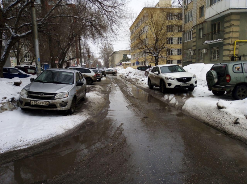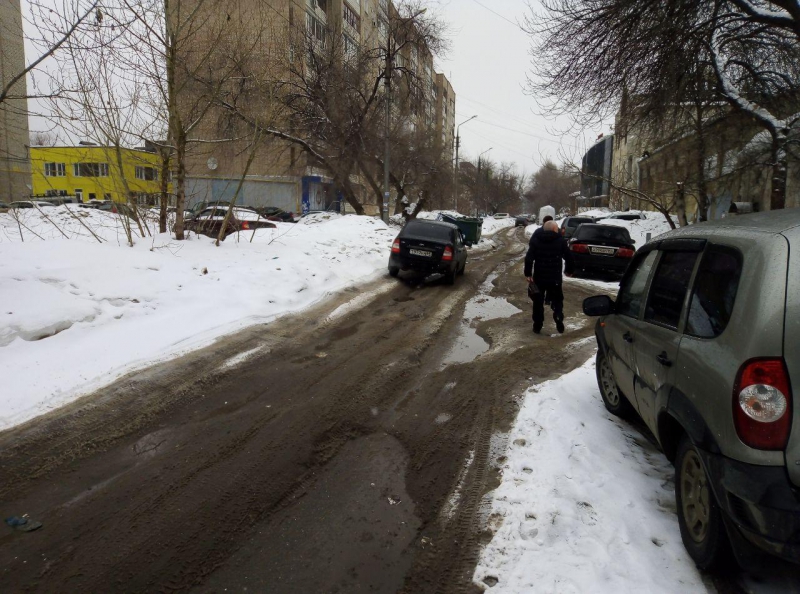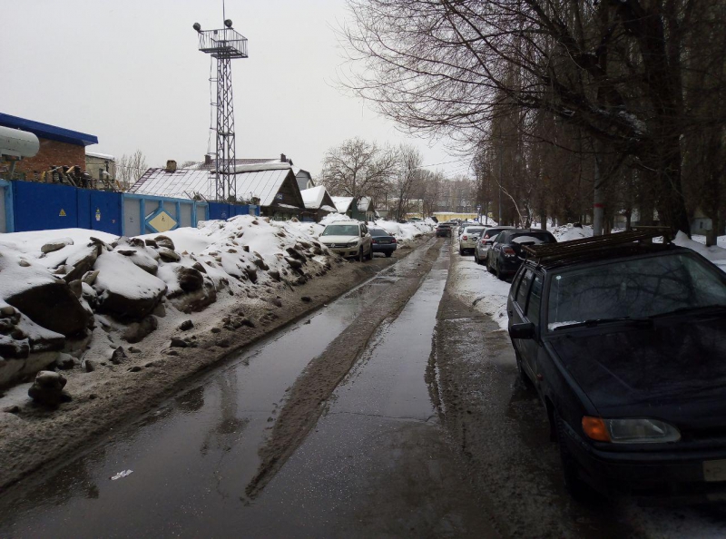Ещё более сложная ситуация наблюдается на улице Железнодорожной, соединяющий улицы Зарубина и Посадского. На этой дороге движение автомобилей осуществляется по единственной ледяной колее.
