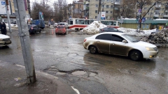Водители вынуждены были аккуратно преодолевать выбоины, провоцируя затор на магистральной Большой Садовой улице.