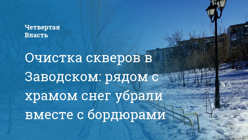 Очистка скверов в Заводском: рядом с храмом снег убрали вместе с бордюрами