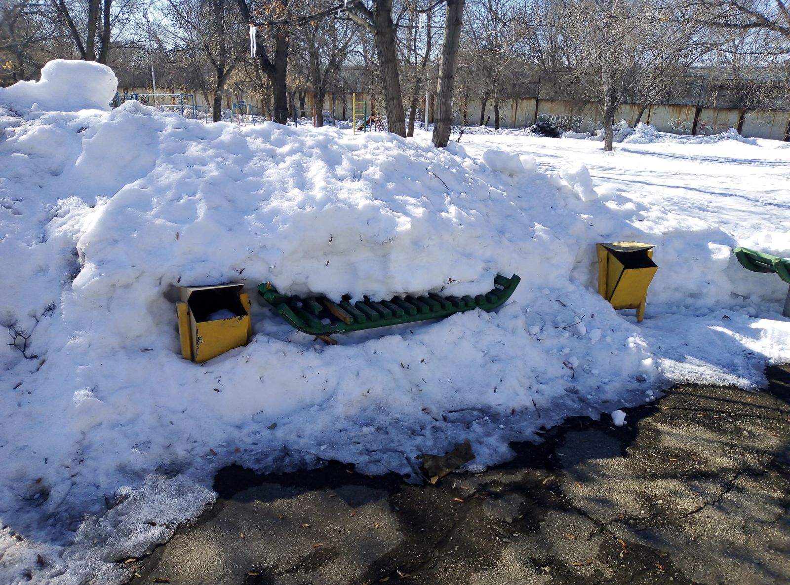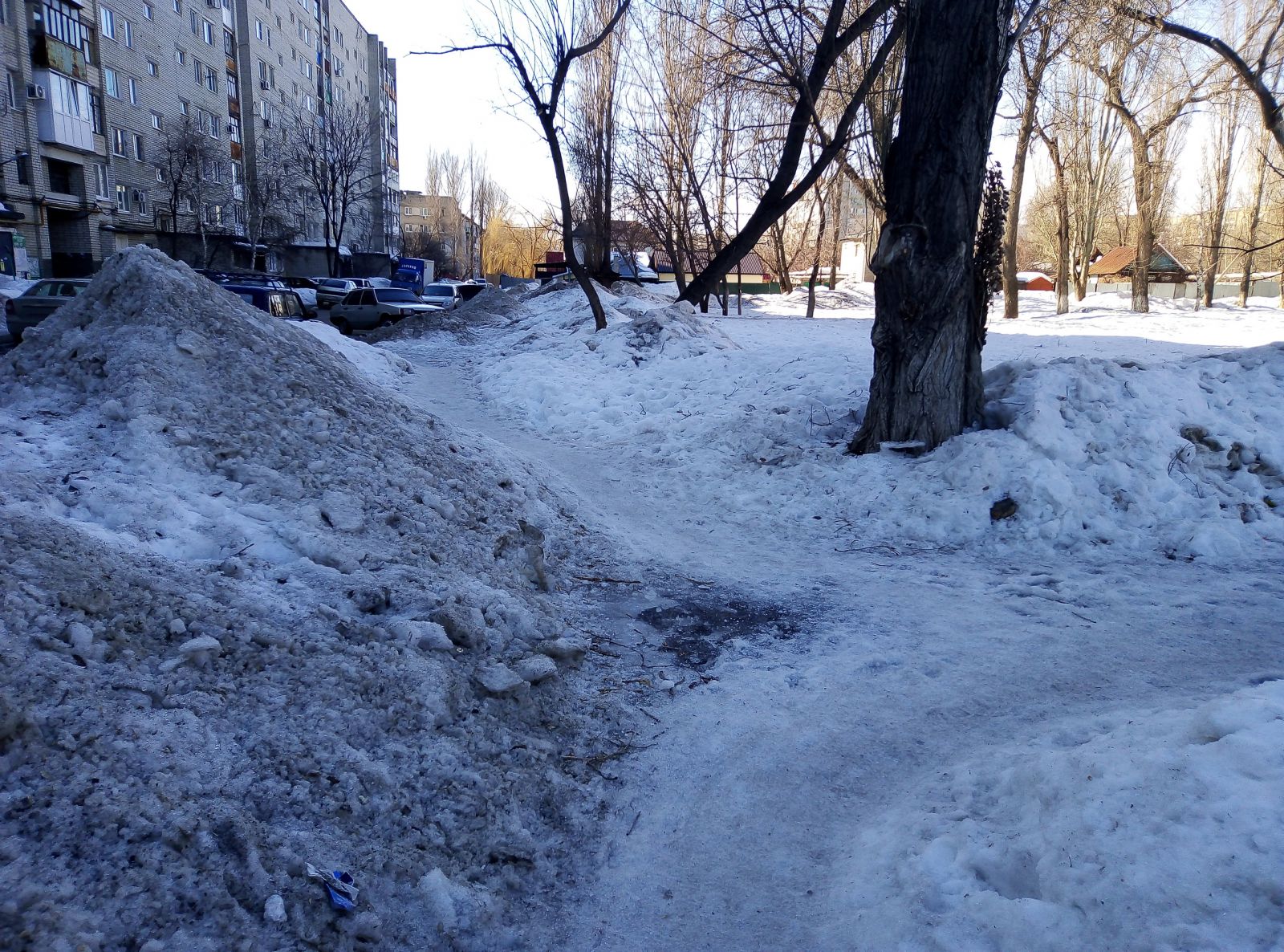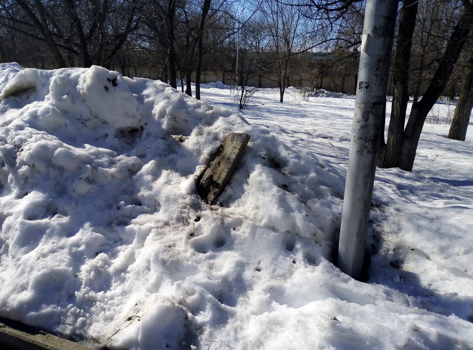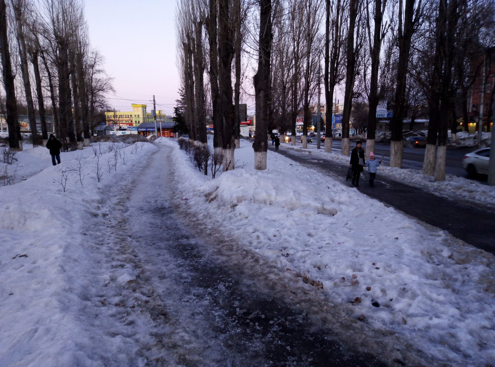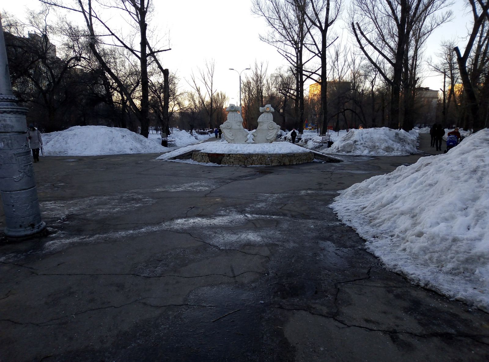 Где-то расчищена цетральная зона, но во льду пребывают подходы к ней, а есть и забытые скверы, как, например, им. М.М. Расковой в поселке СПЗ-3, покрытый толстым слоем снега. При этом дорожки парка активно используются местными жителями, по ним ежедневно они добираются до остановок общественного транспорта в районе 4-го жилучастка.