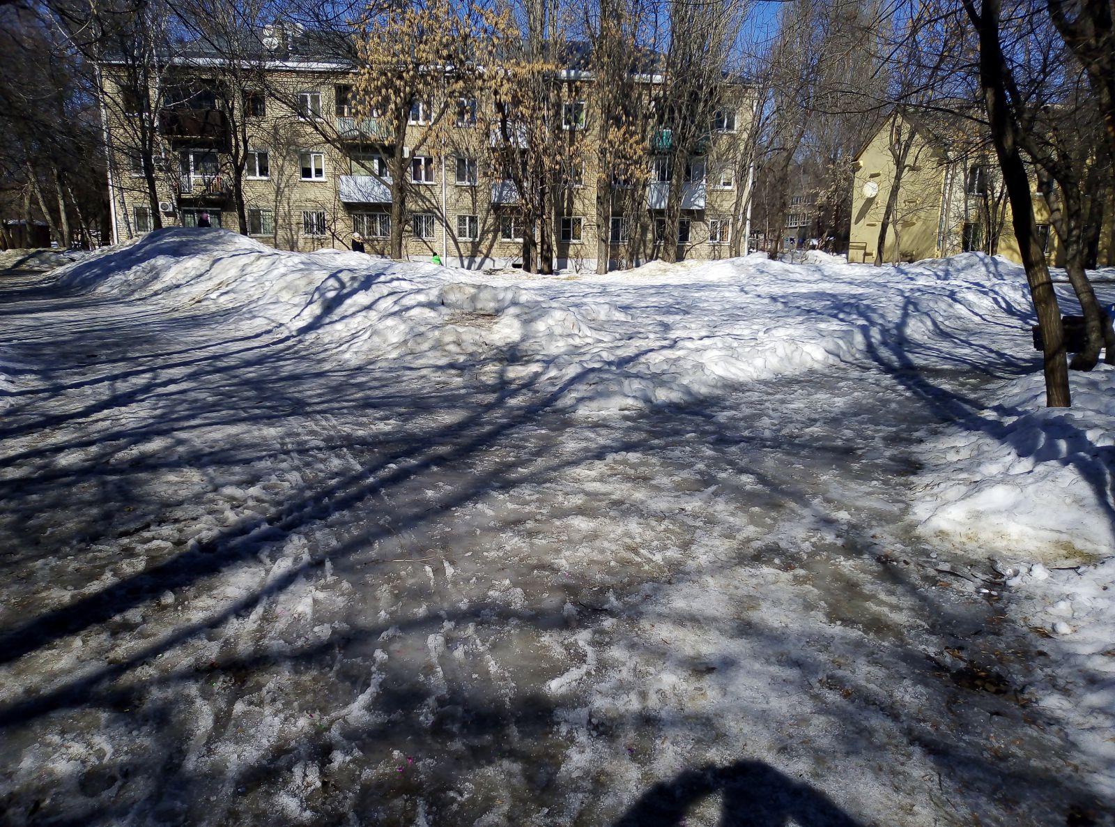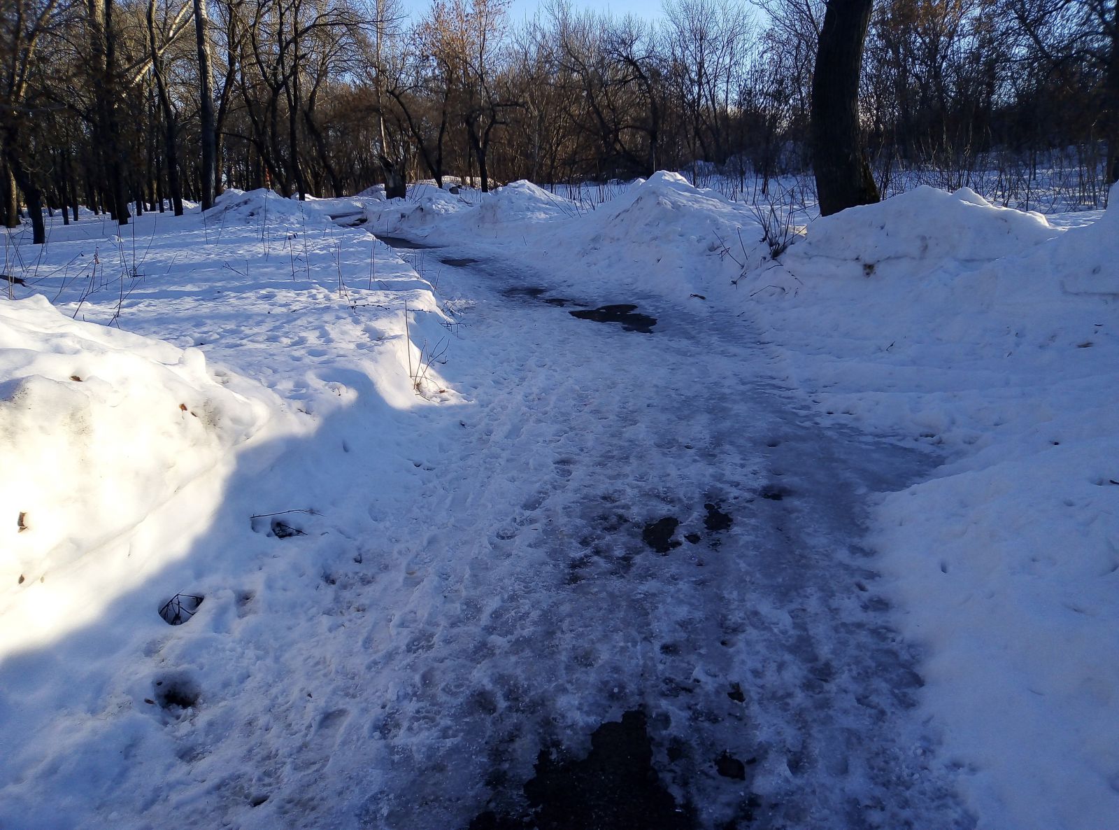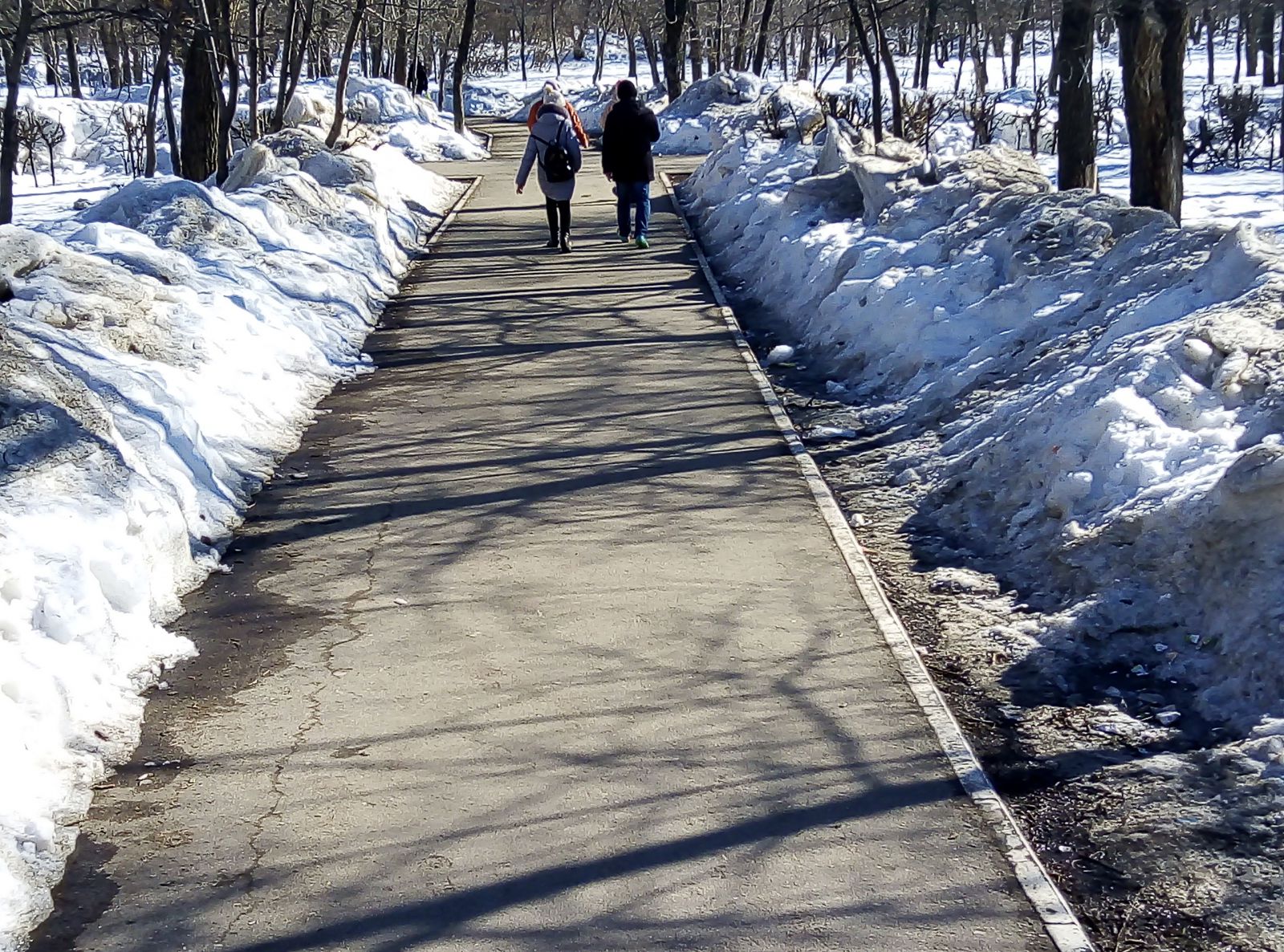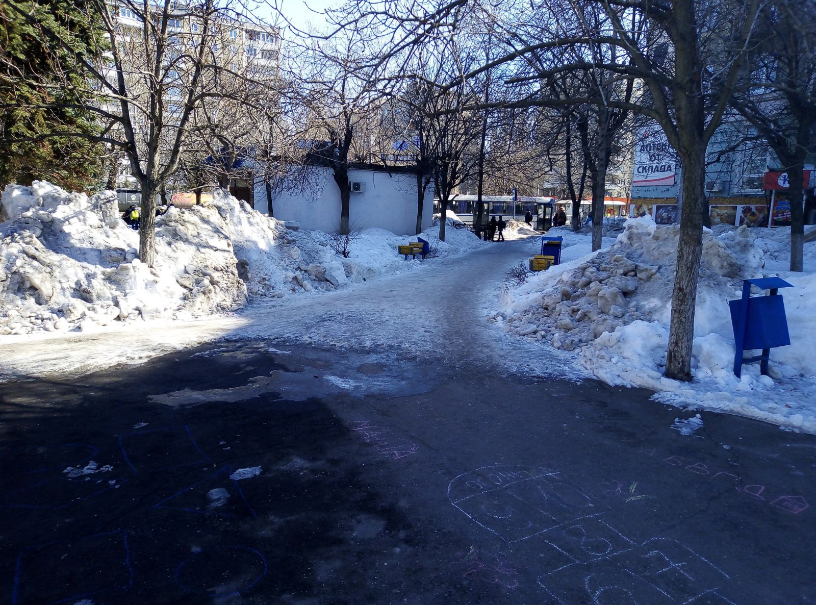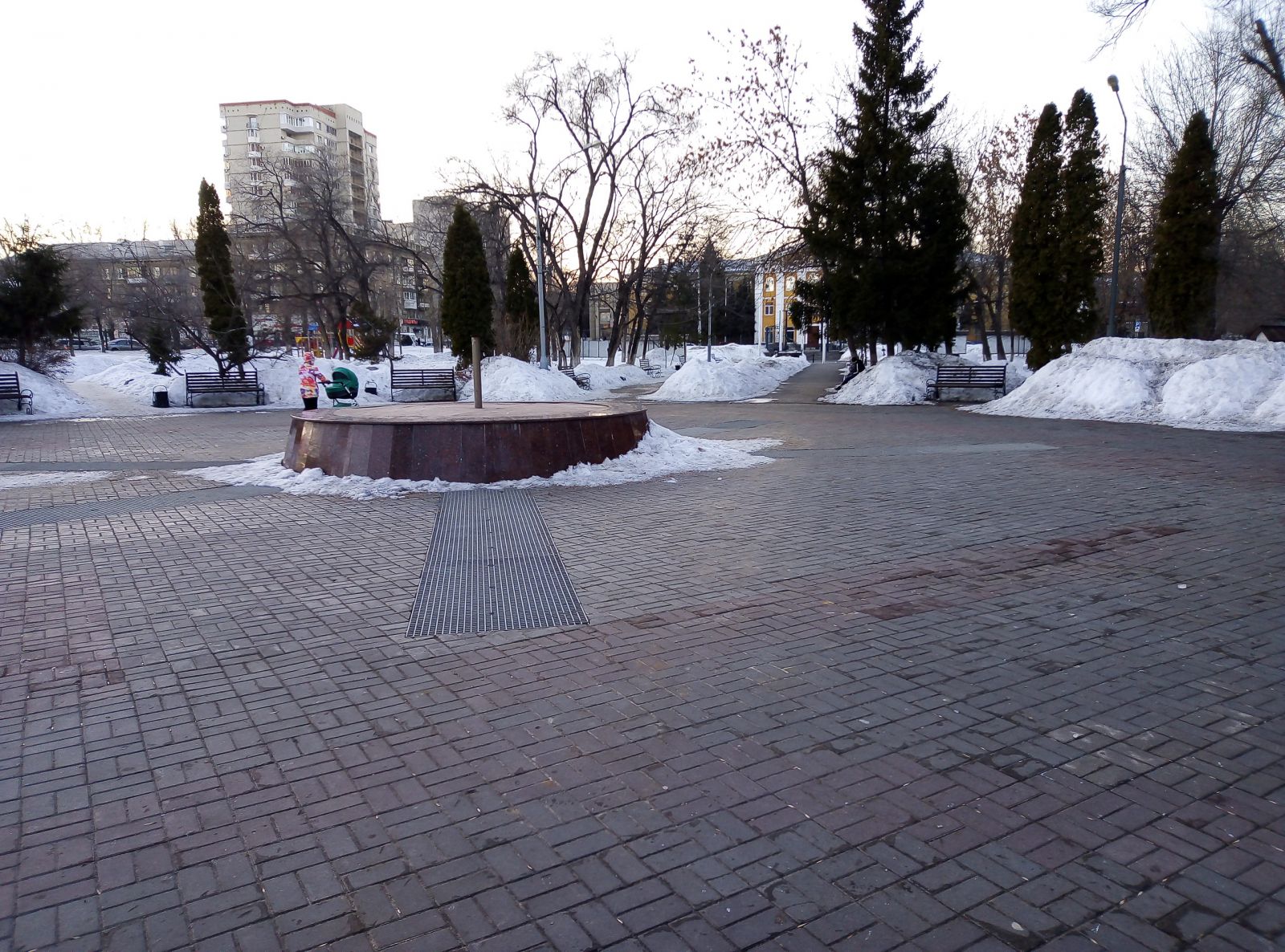 Где-то расчищена цетральная зона, но во льду пребывают подходы к ней, а есть и забытые скверы, как, например, им. М.М. Расковой в поселке СПЗ-3, покрытый толстым слоем снега. При этом дорожки парка активно используются местными жителями, по ним ежедневно они добираются до остановок общественного транспорта в районе 4-го жилучастка.