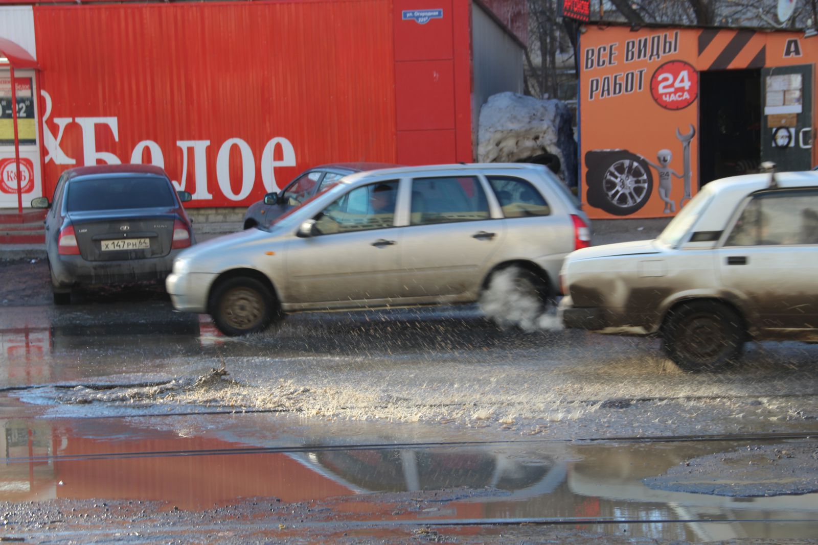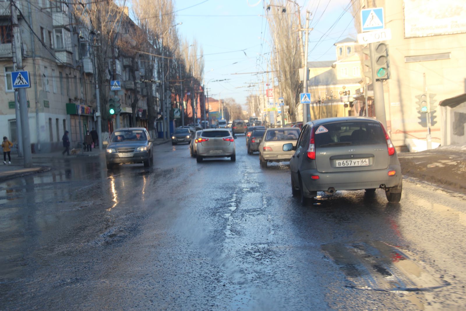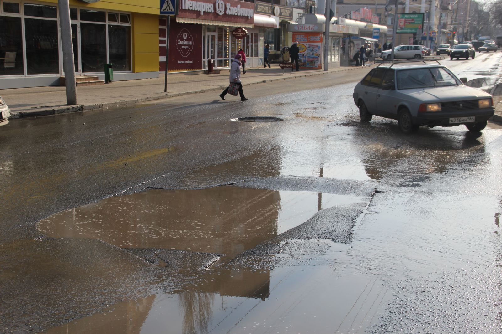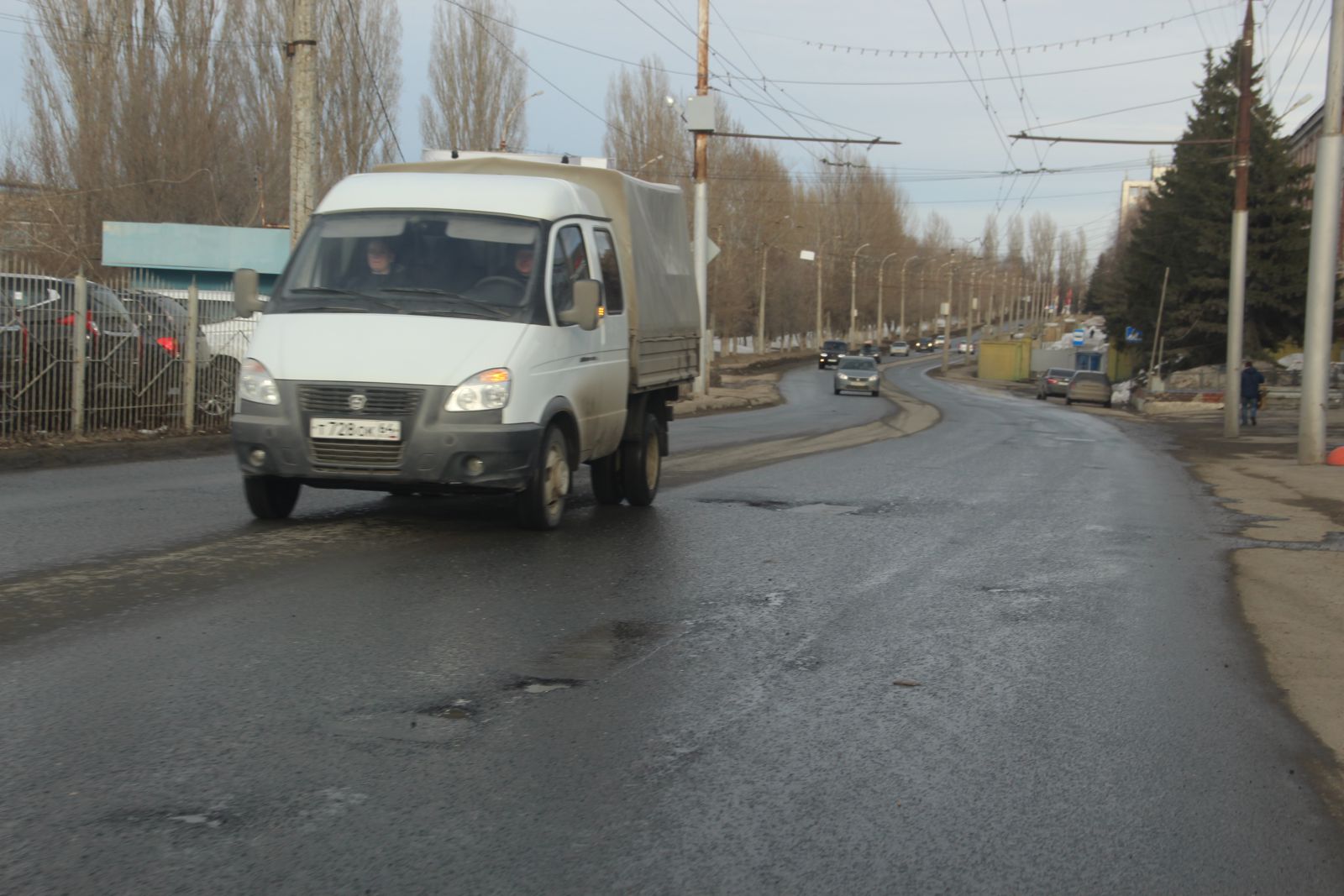 Сложно догадаться, что относительно недавно фирмой «Автогрейд» проводился ремонт автомобильной дороги на улице Чернышевского. Она вся изобилует глубокими просадками, просевшими люками и выглядит, как лоскутное одеяло. Ездить по этой дороге сейчас так же опасно, как и перед ремонтом. Особенно сильно досталось участку от Радищева до Московской. Виной такому состоянию дороги являются бесконечные аварийные вскрышные работы. Коммунальщики при восстановлении дороги не сильно заморачиваются вопросами уплотнения грунта, из-за чего и появляются дорожные дефекты в виде просадок. Новый муниципальный механизм по принуждению через штрафы к качественному восстановлению дорог заработает только в текущем году, поэтому нет ничего удивительного в плачевном состоянии одной из главных улиц города. Ко всему прочему, на участке от Первомайской до Московской продолжил разрушение шов сопряжения полос и начали проглядывать небольшие выбоины, которые можно заметить и на участке между Вольской и Провиантской.