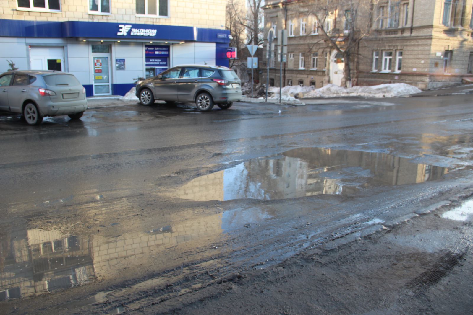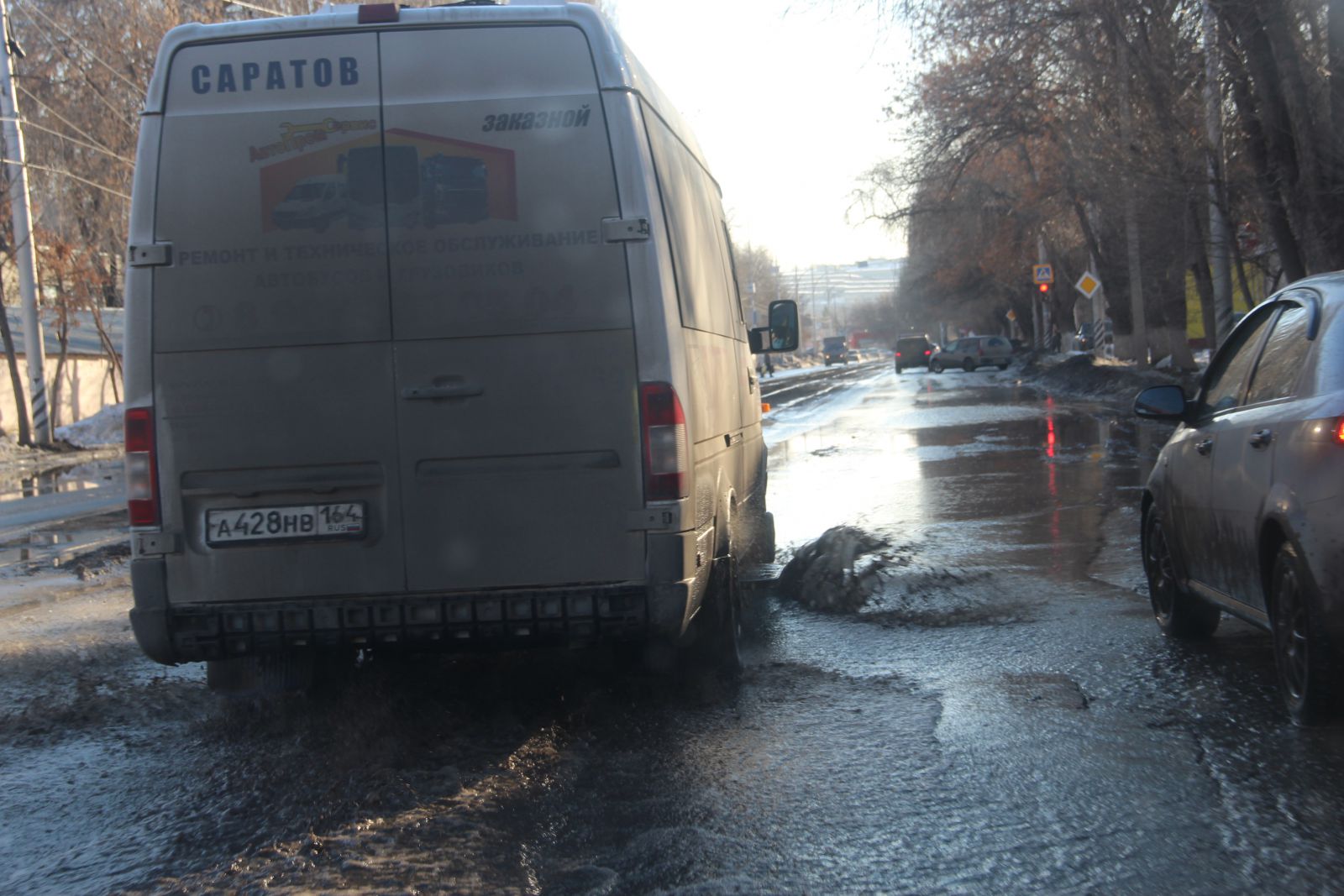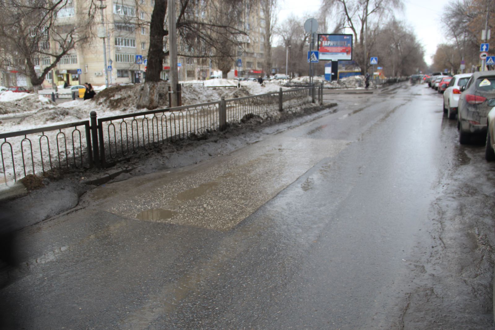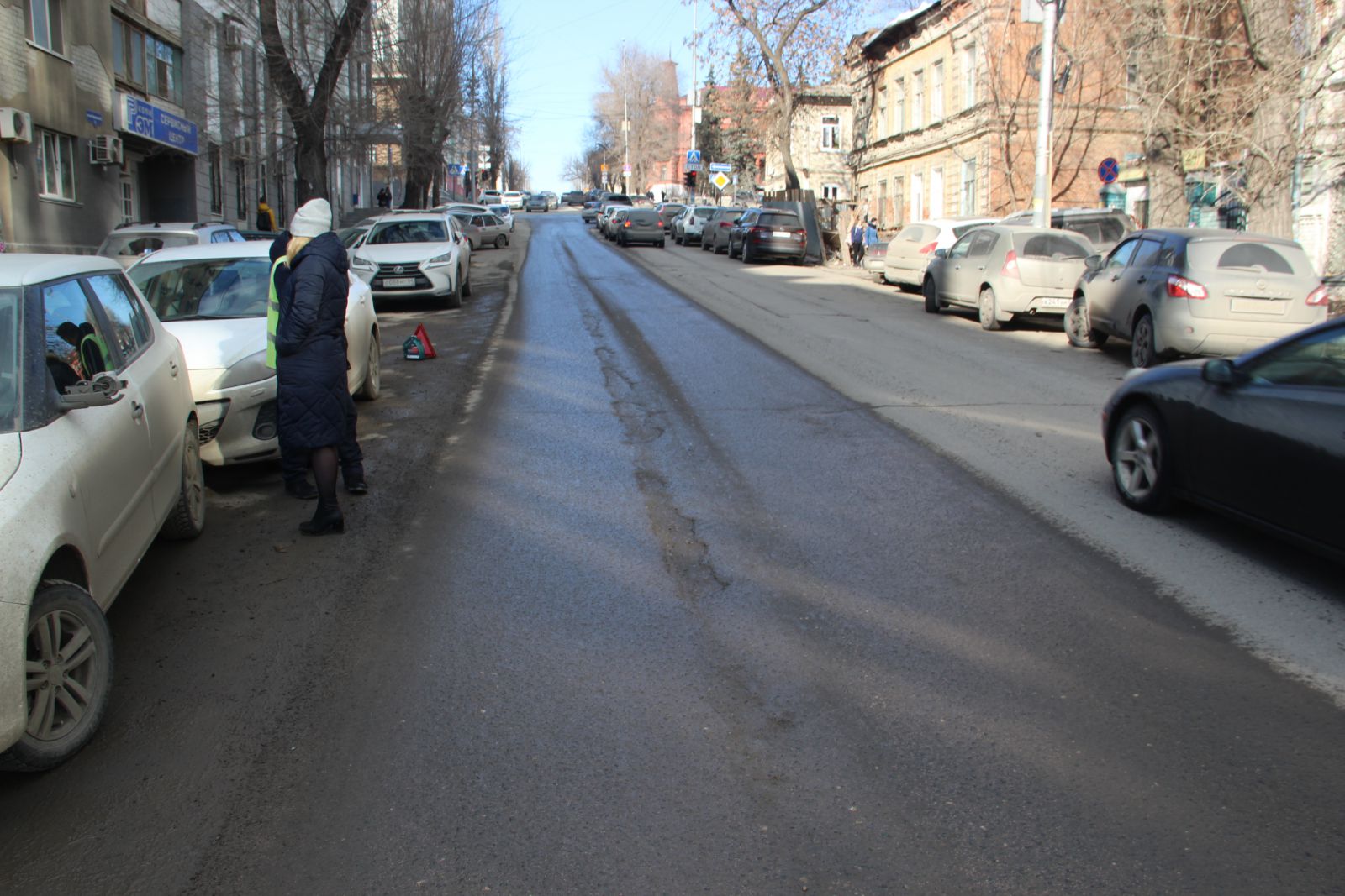 Сложно догадаться, что относительно недавно фирмой «Автогрейд» проводился ремонт автомобильной дороги на улице Чернышевского. Она вся изобилует глубокими просадками, просевшими люками и выглядит, как лоскутное одеяло. Ездить по этой дороге сейчас так же опасно, как и перед ремонтом. Особенно сильно досталось участку от Радищева до Московской. Виной такому состоянию дороги являются бесконечные аварийные вскрышные работы. Коммунальщики при восстановлении дороги не сильно заморачиваются вопросами уплотнения грунта, из-за чего и появляются дорожные дефекты в виде просадок. Новый муниципальный механизм по принуждению через штрафы к качественному восстановлению дорог заработает только в текущем году, поэтому нет ничего удивительного в плачевном состоянии одной из главных улиц города. Ко всему прочему, на участке от Первомайской до Московской продолжил разрушение шов сопряжения полос и начали проглядывать небольшие выбоины, которые можно заметить и на участке между Вольской и Провиантской.