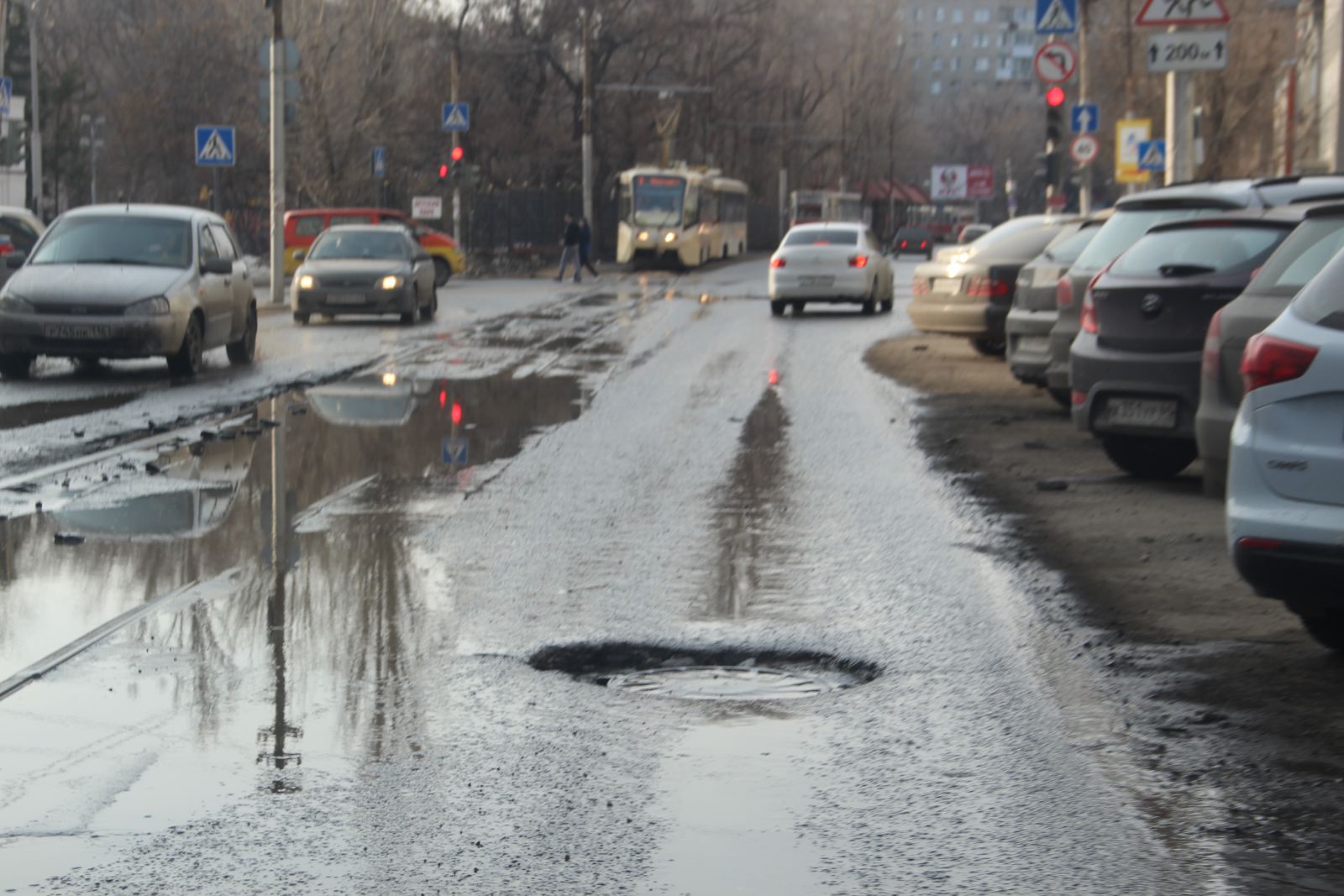 Наибольшую тревогу вызывает состояние «пилотной» дороги, которую сдали 3 года назад на улице Плодородной. По иронии судьбы проезжая часть, которую сдали первой, первой же и приходит в негодность.