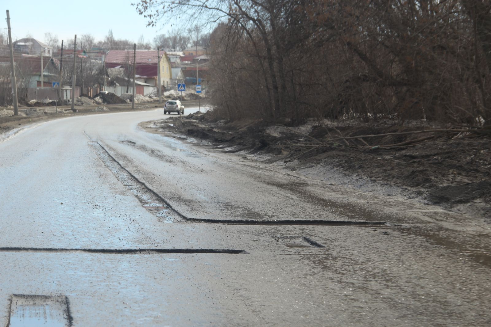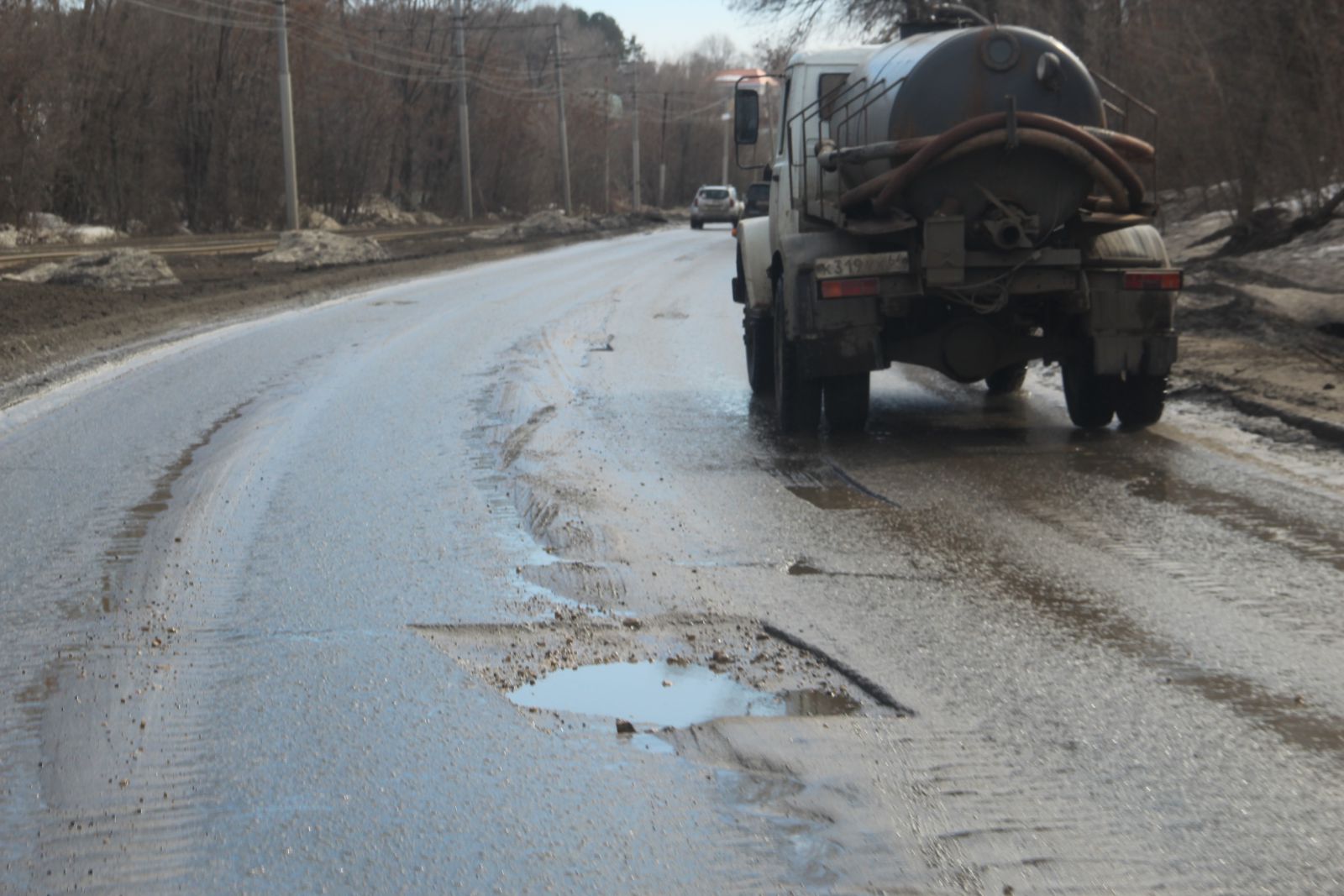 Латая дыры, чтобы автолюбители не угодили в ямы, спрятанные под водой, дорожники кидали ремонтную смесь прямо в лужу. Данный факт вызывает недоумение у окружающих, однако в случае с половодьем это единственный способ устранения дефекта. Естественно, такие работы в ближайшие недели будут переделаны. Но вместе с тем, скоро и головная боль по содержанию проблемного почти километрового участка станет мученьем муниципалитета, а не подрядчика АО «Автогрейд».