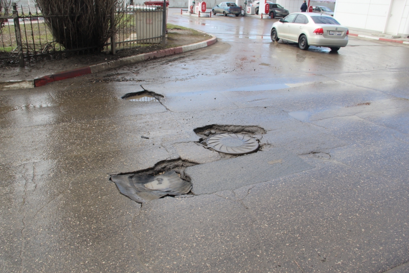 Небольшая дорога вдоль заправки «Лукойл», соединяющая улицы Усть-Курдюмскую и Вешнюю, покрыта глубокими выбоинаими.