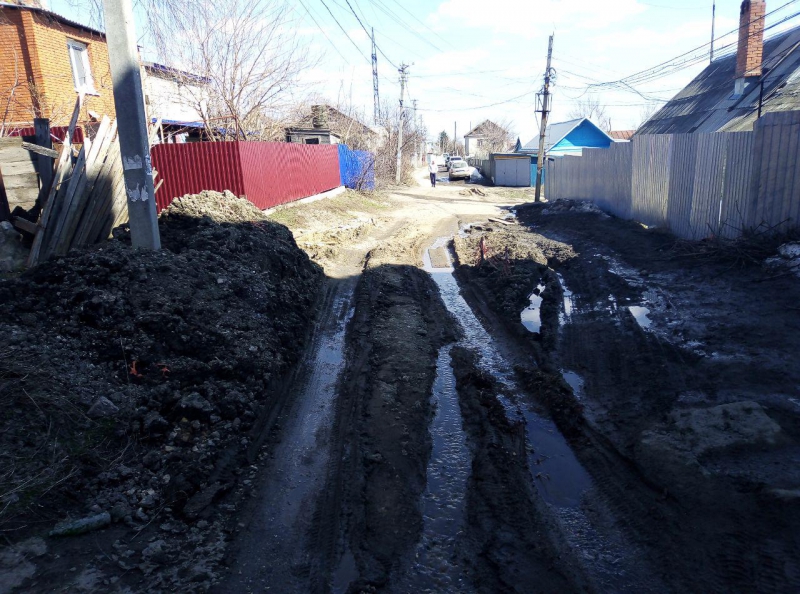 Десятки частных домов оказались отрезанными от остального города из-за перекопанной дороги. Неуплотненый грунт раскопа проваливается под ногами пешеходов, машины и вовсе рискуют застрять.