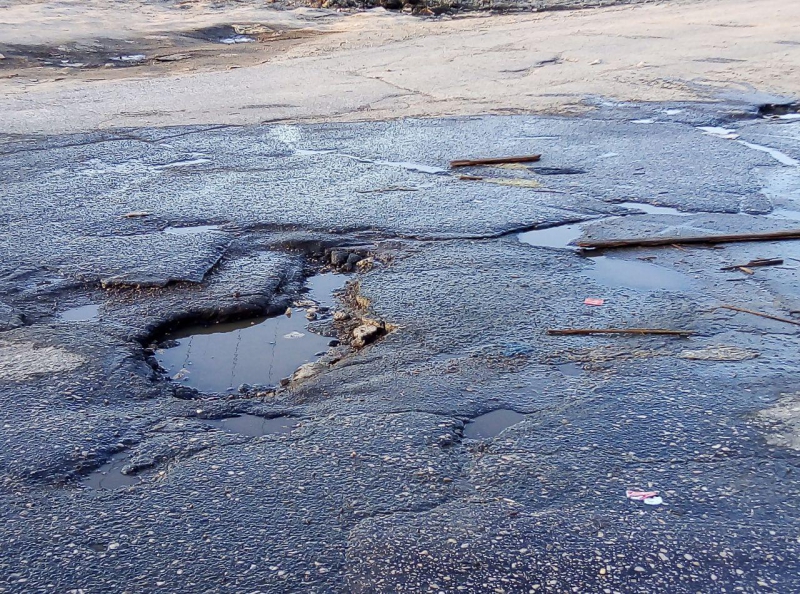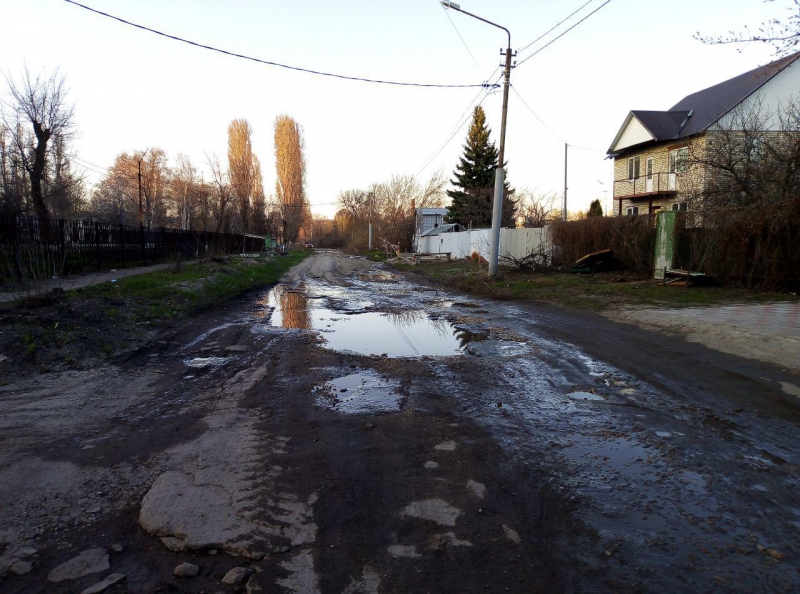 Заречная улица покрыта выбоинами и просадками