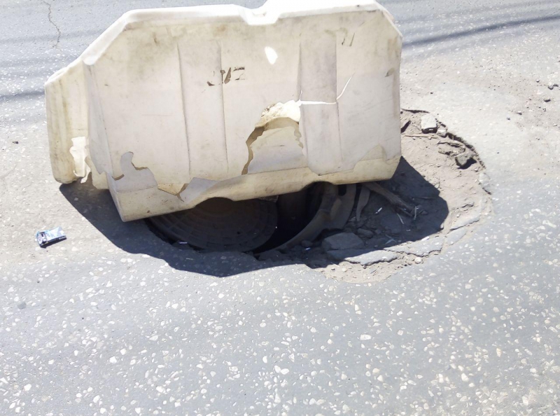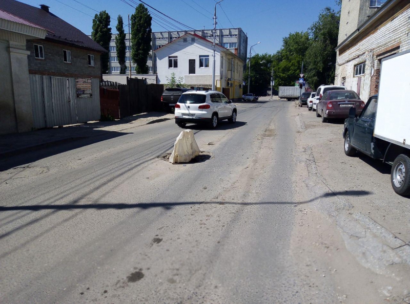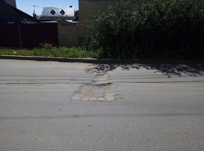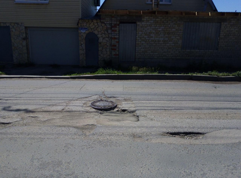 На улице Крайней водители вынуждены маневрировать между выбоинами и просевшими смотровыми колодцами. Наибольшие затруднения наблюдаются перед пересечением с улицей Соколовой. В этом месте смотровой колодец обвалился, и опасное препятствие, перекрывающее одну из полос, обозначено водоналивным блоком. В таком состоянии люк пребывает уже второй месяц и попыток исправить ситуацию не наблюдается.