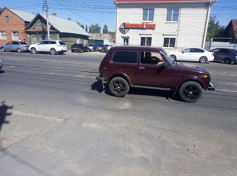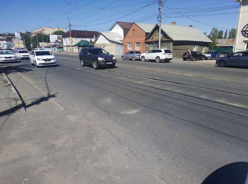 Водители вынуждены объезжать препятствие по трамвайным путям, межрельсовое пространство которых не отличается ровностью. Крайний правый ряд улицы Танкистов на этом участке занят припаркованным транспортом, что создает дополнительные трудности и замедляет скорость потока до минимума.