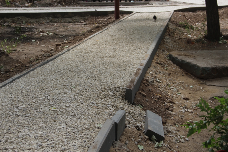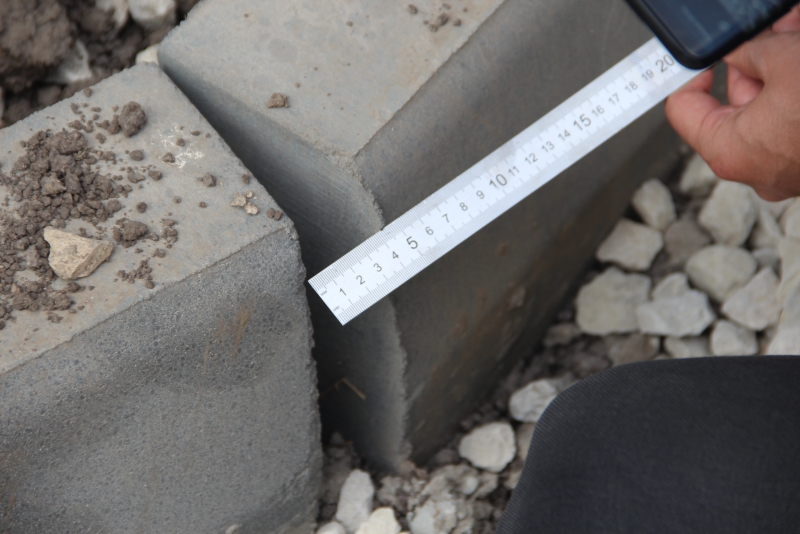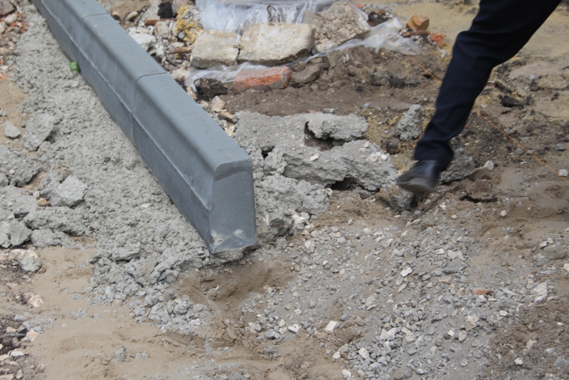 В этот же день «Дорожный контроль» и прокуратура Волжского района побывали в ремонтируемом дворе по ул. Лермонтова №11/15 в Саратове. Здесь была выявлена неправильная установка бордюра. Бетон, на который поставили борт, буквально рассыпался под ногами. Это произошло из-за того, что рабочие не успели поставить камни до того, как завезенный на стройплощадку бетон начал «схватываться». Чтобы исправить нарушения, в этом дворе необходимо полностью переставить борт.