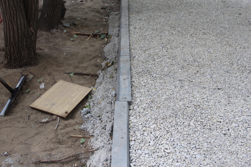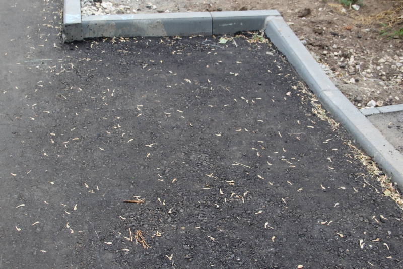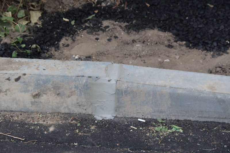 Помимо этого претензии возникли к установке бордюра. Несколько бортовых камней оказались повалены, другие не отличались прямолинейностью установки. Запиливать борт на поворотах подрядчик не стал, из-за чего между камнями образовались большие зазоры. Их устранение плиточным клеем приведет лишь ко временному исправлению ситуации. На одной из пешеходных дорожек бордюр и вовсе умудрились поставить то лицевой, то внутренней стороной наружу.