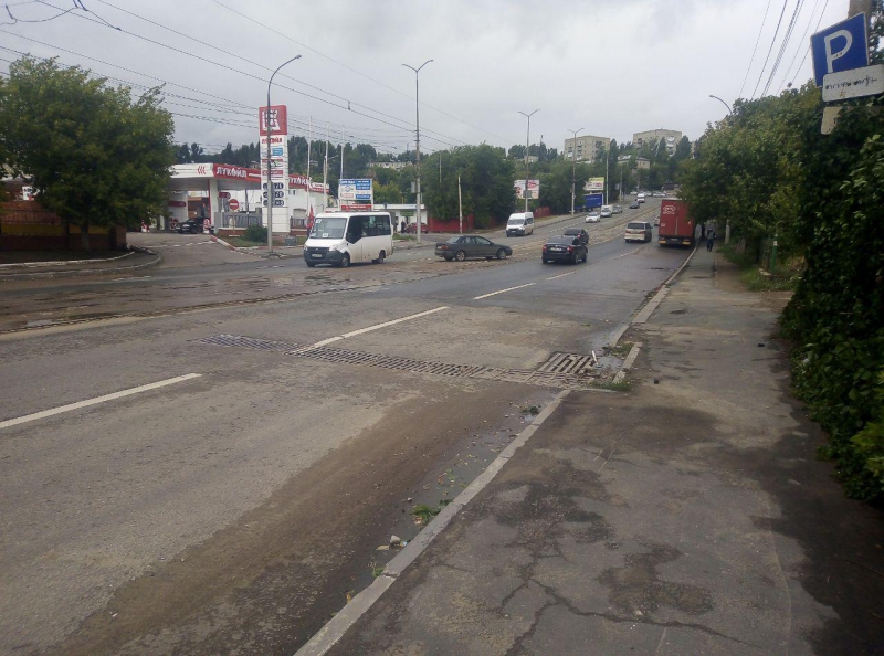 Водители, двигающиеся со стороны улицы Крайней, стараются двигаться крайним левым рядом, прижимаясь к рельсам, стараясь объехать препятствия. Машины, которые рискуют проехать по ливневке с нормативной скоростью, подпрыгивают на ней, как на хорошей кочке.