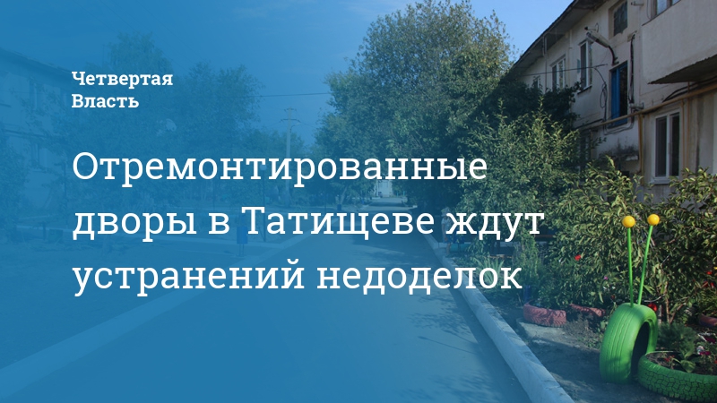 В рамках проекта «Формирования комфортной городской среды» в Татищеве благоустроили дворы у пяти многоквартирных домов на территории 1 квартала по улице Северной. Кроме нового асфальта и бордюра, у подъездов появились лавочки и урны, а также декоративные опоры освещения. Визуально отремонтированные территории выглядят законченными, но дорабатывать подрядчику некоторые детали все же предстоит. Однако в целом дворы смотрятся опрятно, несмотря на то, что процесс благоустройства территорий в Татищеве проходил не слишком гладко.