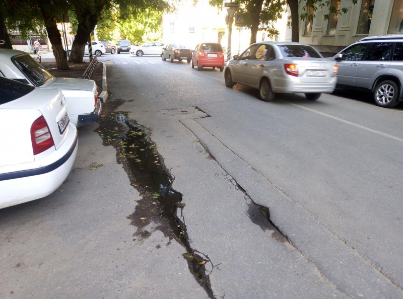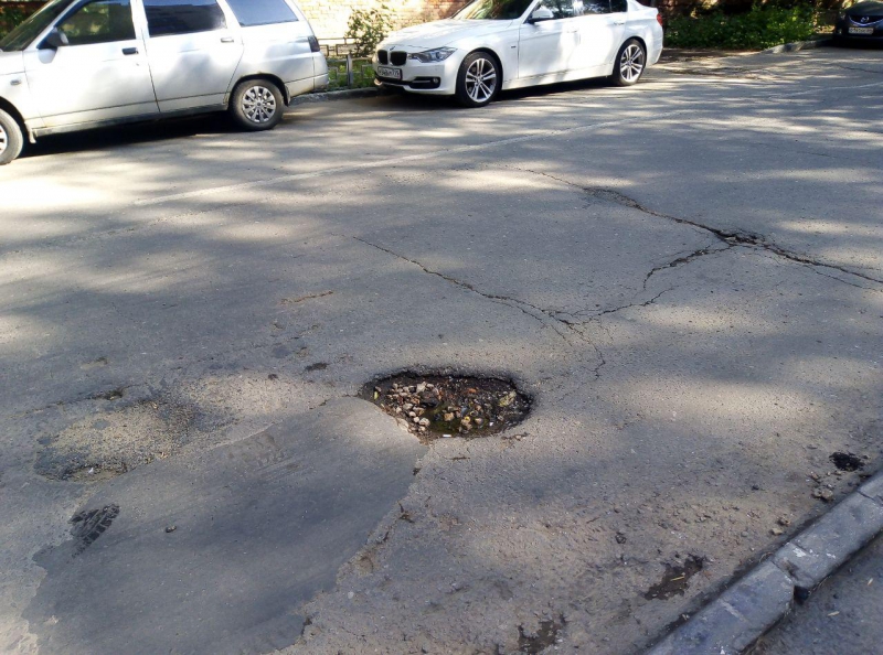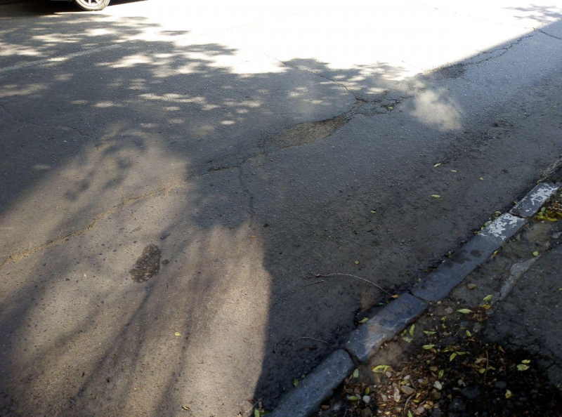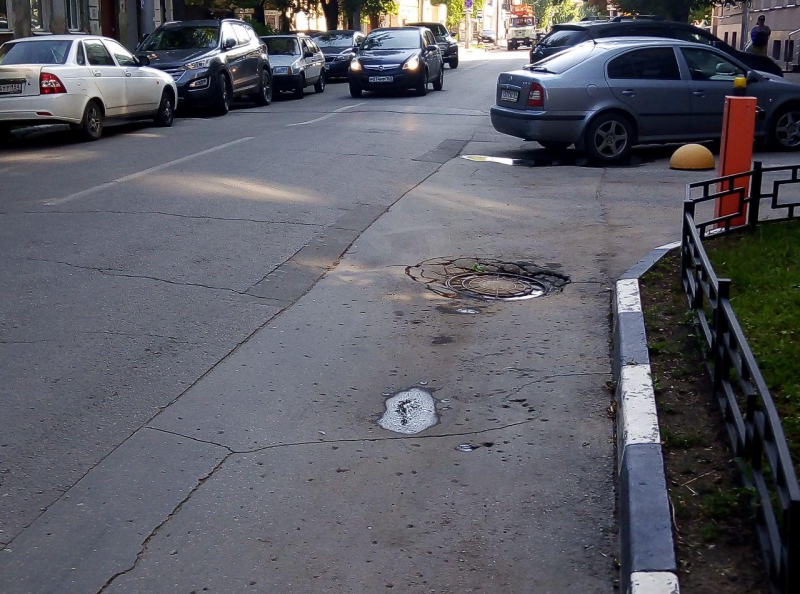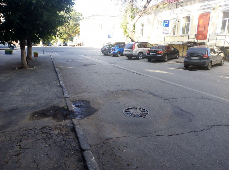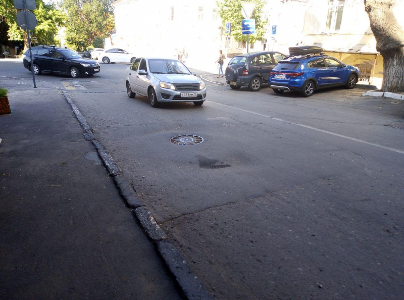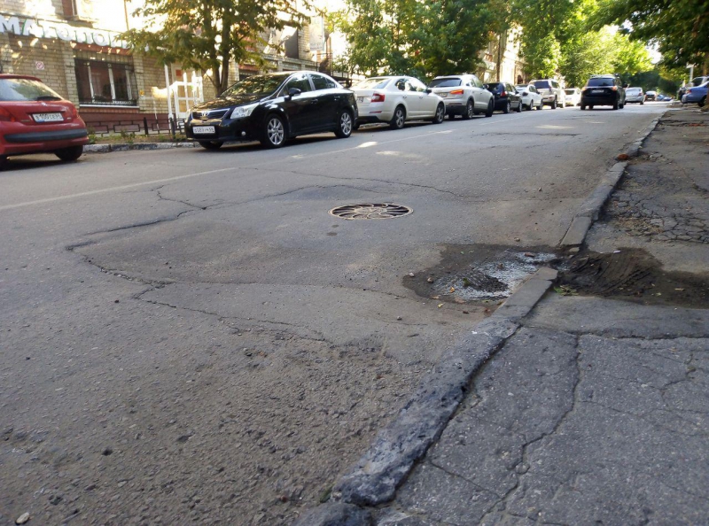 Просадки и выбоины затрудняют движение по этой небольшой, но востребованной улице в центре города. Одна из сторон дороги в будние дни плотно заставлена автомобилями, из-за чего места для объезда препятствий водителям не остается.