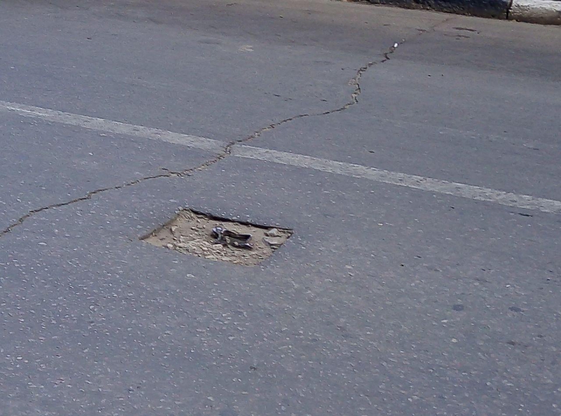Автолюбители пожаловались в редакцию «Дорожного контроля» на многочисленные разрушения дорожного покрытия на улице Некрасова, на участке от Московской до улицы Григорьева.