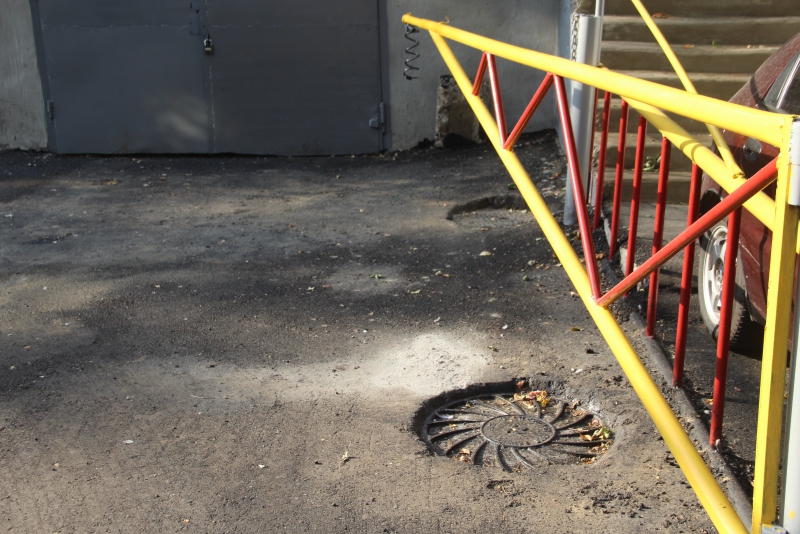 Возникли вопросы и к другим дворам, где работы уже завершены. Асфальт на проезде у дома №11/15 по улице Лермонтова в Волжском районе Саратова во многих местах, где наблюдалось выкрашивание и сегрегация, промазан то ли мастикой, то ли неудачной пропиткой. На жарком августовском солнце пропитка прилипает к подошвам пешеходов и колесам автомобилей. Также в этом дворе обнаружилась парочка люков, которые не подняли на один уровень с покрытием.