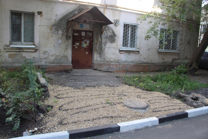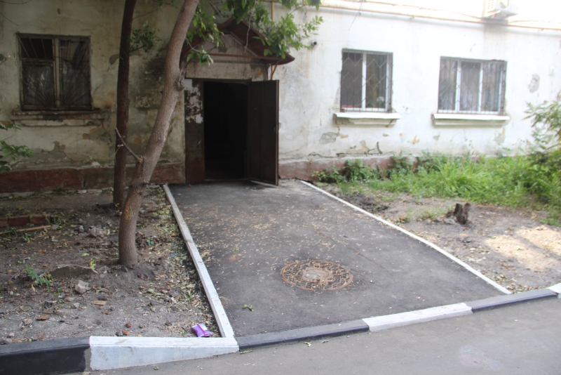В ходе предыдущих проверок замечаний к субподрядчику, проводившему работы в Заводском районе, не было. Но на момент нашей последней инспекции большого двора, занимающего целый квартал на улице Миллеровской, неожиданно оказался незакончен ремонт входной группы у дома №17 по Цветочной. Возможно, это произошло из-за того, что в списке домов, подлежащих ремонту в обустраиваемом квартале, этот дом почему-то не значился. В результате единственная нетронутая входная группа диссонирует на фоне большой отремонтированной территории.