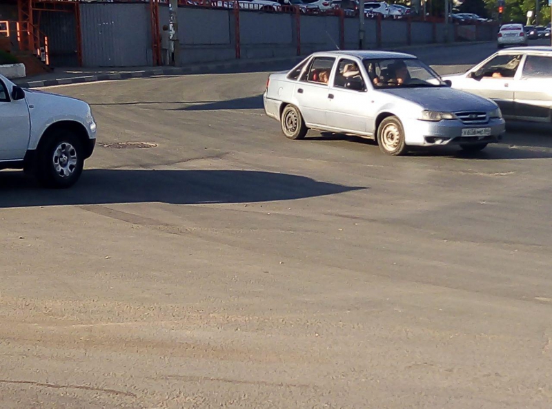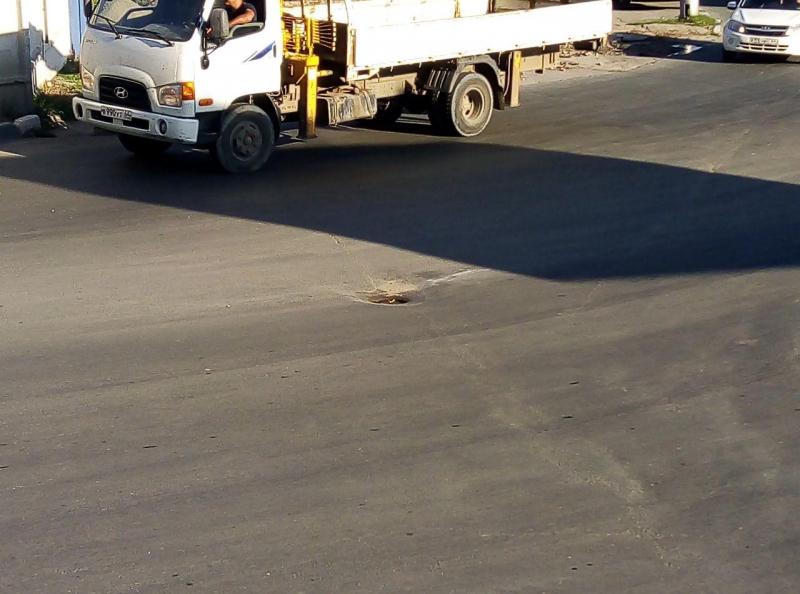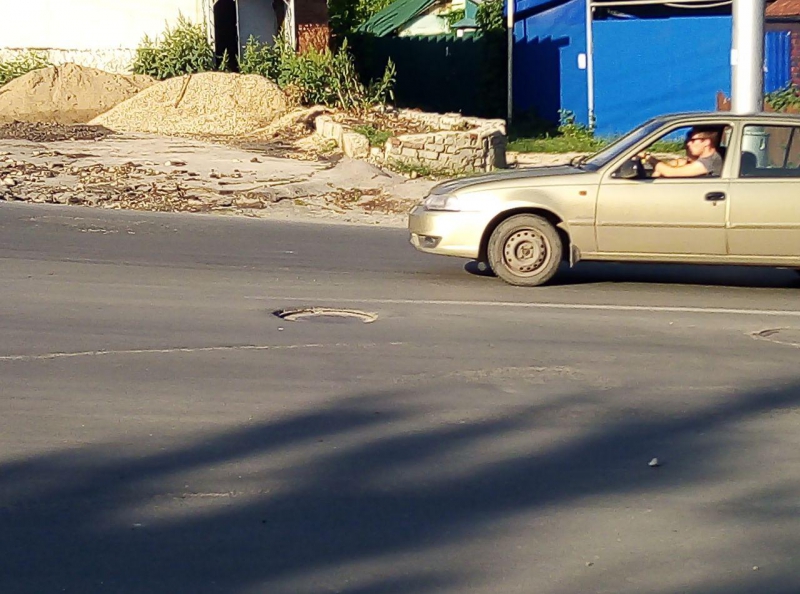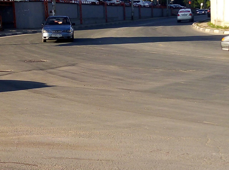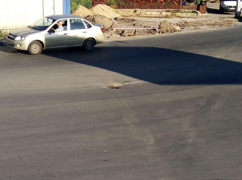 На дороге Дружбы движение на опасном повороте, на пересечении с улицей Рабочей, осложнено просевшими люками и просадками покрытия.