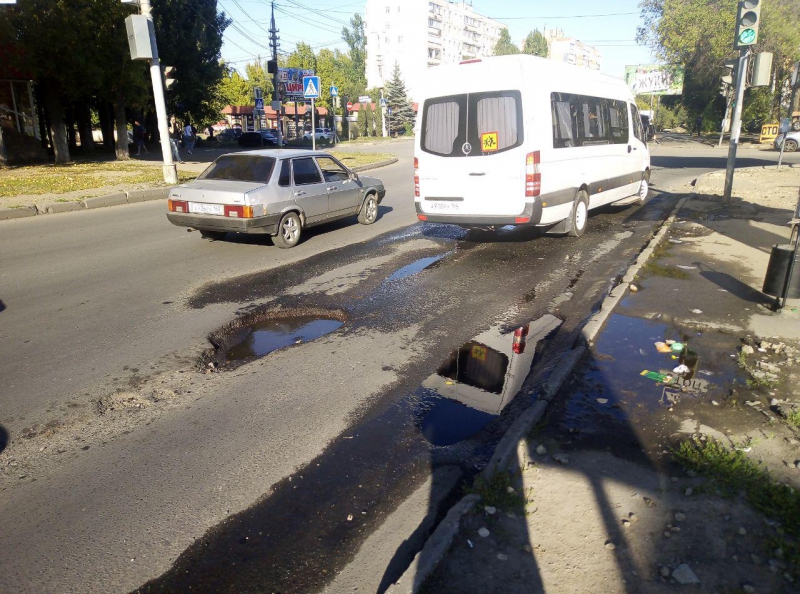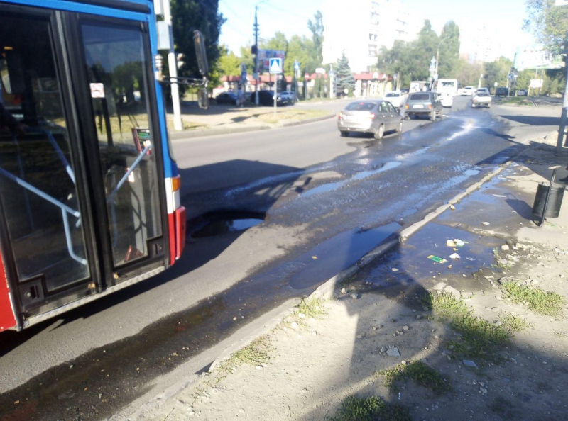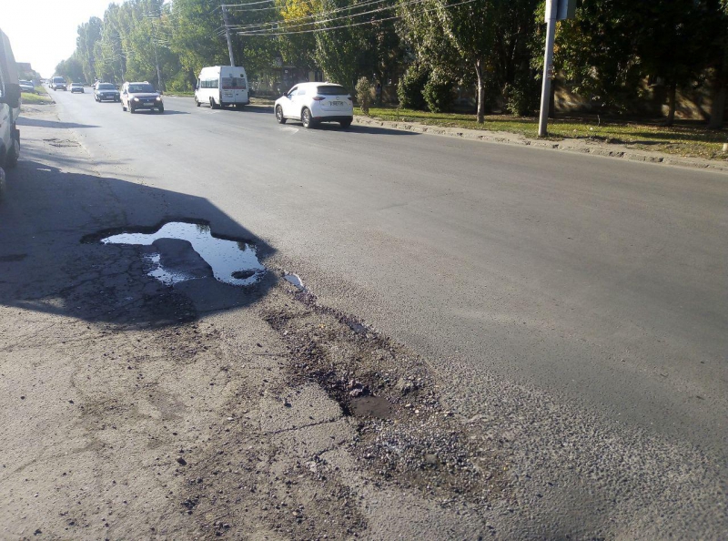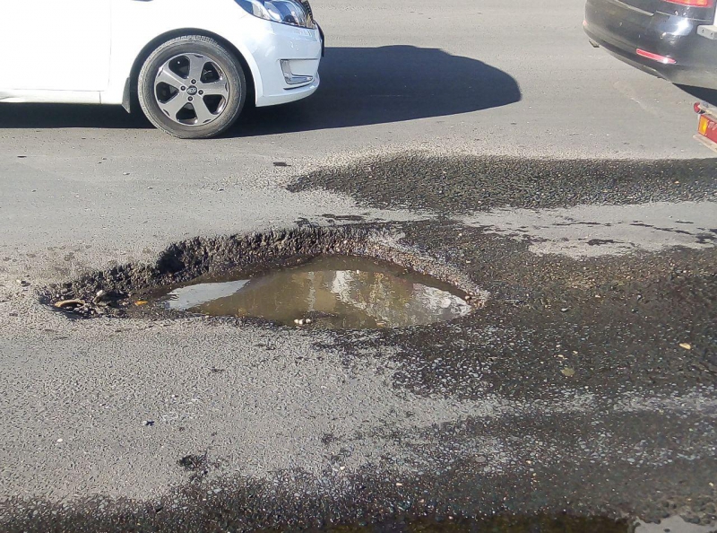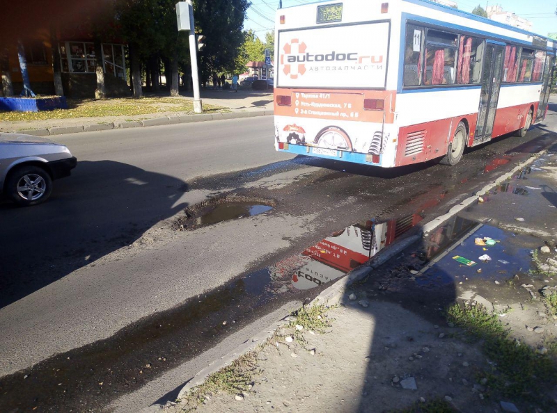 Автобусы, аккуратно маневрируя, подъезжают к остановке, стараясь не попасть в яму размером с колесо. Для водителей, двигающихся в сторону улицы Перспективной, для движения безопасным остается только крайний левый ряд дороги, что в часы пик приводит к заторам.