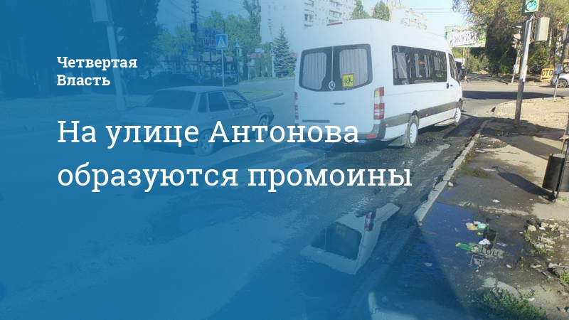 Ямы и прилегающий к остановке участок дороги заполнены водой, которая способствует разрушению покрытия, размывая асфальт. Этот участок улицы Антонова был отремонтирован в 2016 году, но на пересечении с улицей Лебедева-Кумача уже пришел в ненормативное состояние.