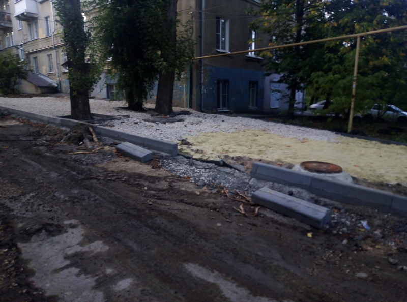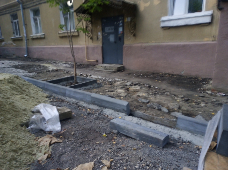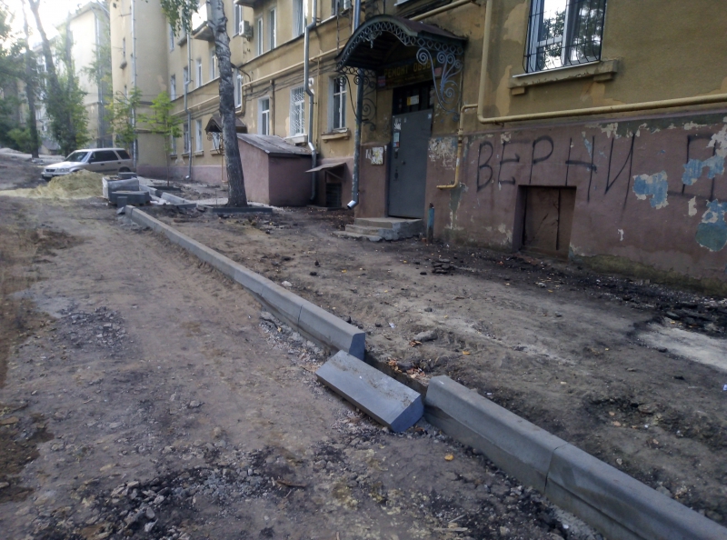 В ремонтируемых дворах на улице Международной, в Ленинском районе Саратова, начал вываливаться бордюр.