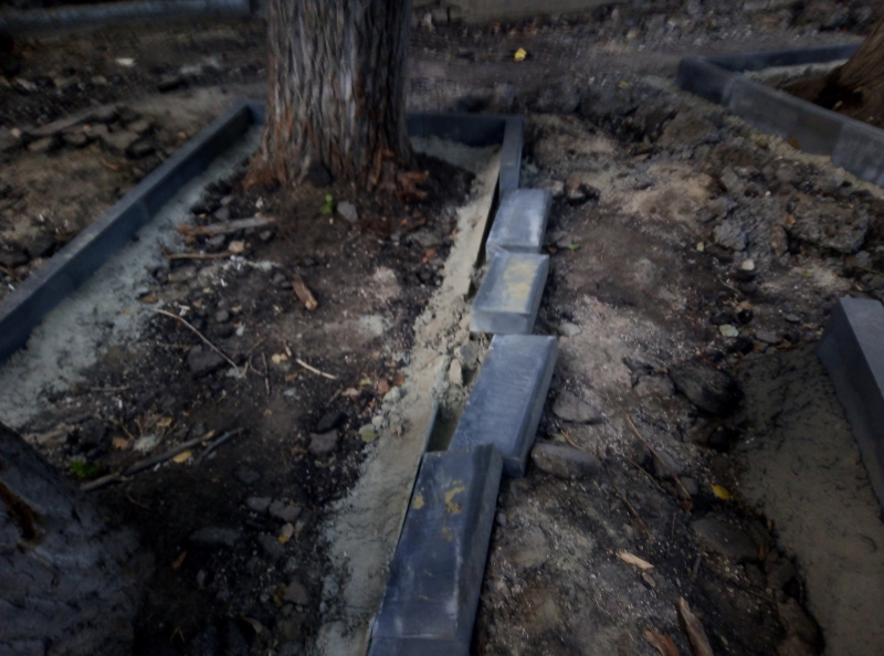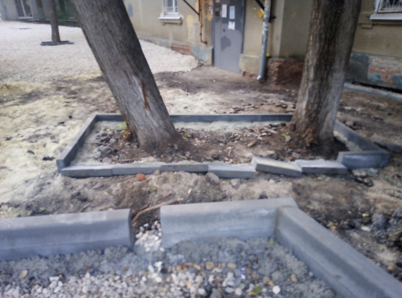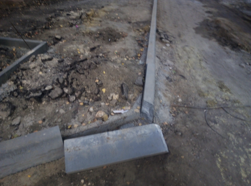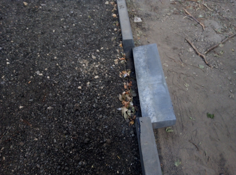 Бортовой камень, который недостаточно укрепили бетоном, просто падает, иногда по несколько штук подряд. Возможно, подрядчик рассчитывал, что после асфальтирования территории борт будет держаться и не будет заметна экономия материалов. Но бордюр «подвел» строителей, начав падать, не дожидаясь окончания ремонта.
