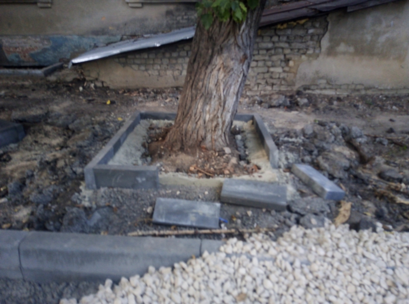 Выпадают бортовые камни на проезд вдоль всех ремонтируемых домов, но наиболее многочисленные разрушения наблюдаются у дома №16, где также разрушилось ограждение деревьев на пешеходной зоне.