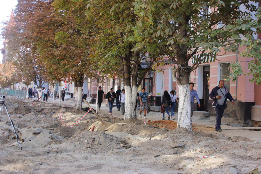 На проспекте Кирова ведется масштабная реконструкция. В настоящее время заканчиваются работы по ремонту и замене водоканальных и электрических сетей. Есть опасность, что из-за недостаточного уплотнения грунта после вскрышных работ после укладки плитки, весной произойдет просадка и искривление дорожек.