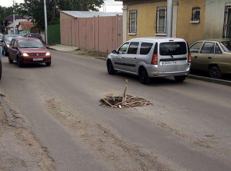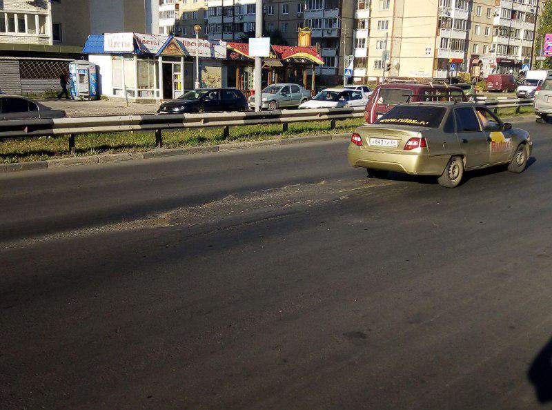 Проезд по средней полосе в сторону улицы Чехова был затруднен из-за просадок и значительных выпоров, о которые задевали днищем автомобили. Изначально дорожники попытались устранить препятствия, накидав немного асфальта в яму, но это незначительно облегчило проезд автотранспорта. И только в сентябре безопасность проезда была восстановлена.
