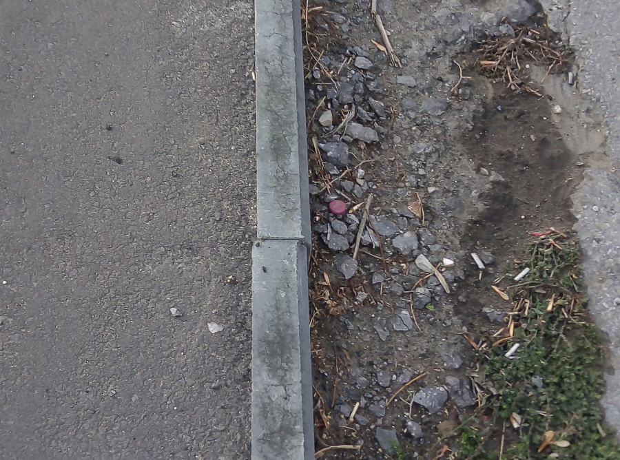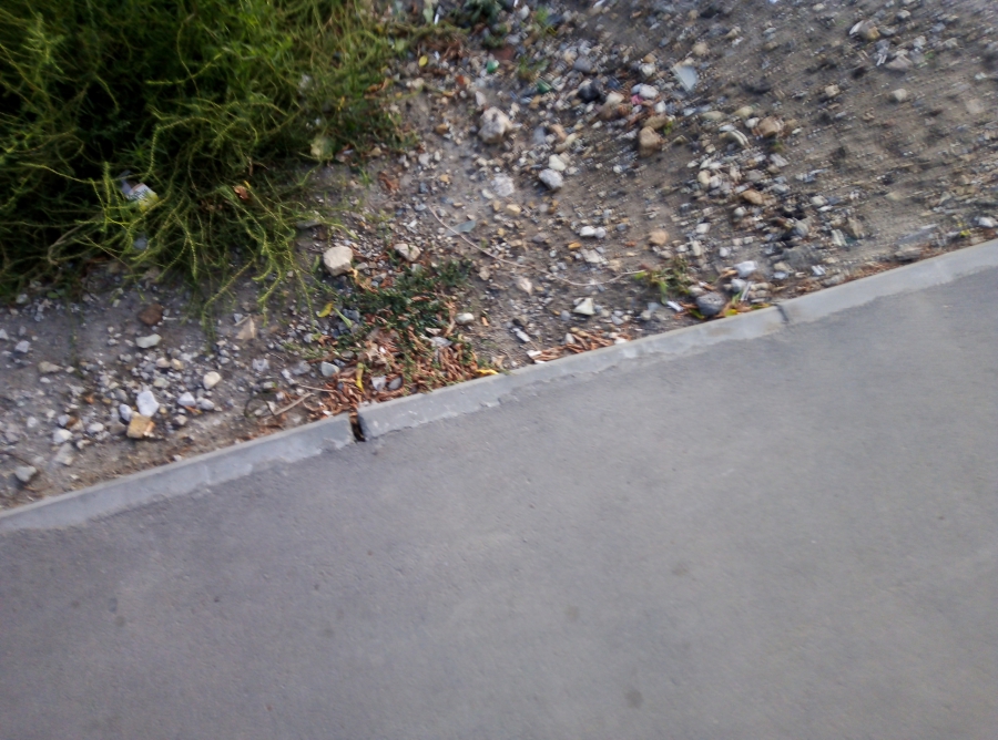 На 6-м Динамовском проезде от Южной до Миллеровской, где субподрядчиком выступало ООО «НикаСтройАвто», все вообще могло быть в полном порядке, но картину смазал небольшой участок со стороны Южной, где встречаются следы уплотняющей техники. Также наше внимание привлек разрушенный бордюр рядом с мусорной площадкой. Причиной этого мог стать наезд тяжелой техники.