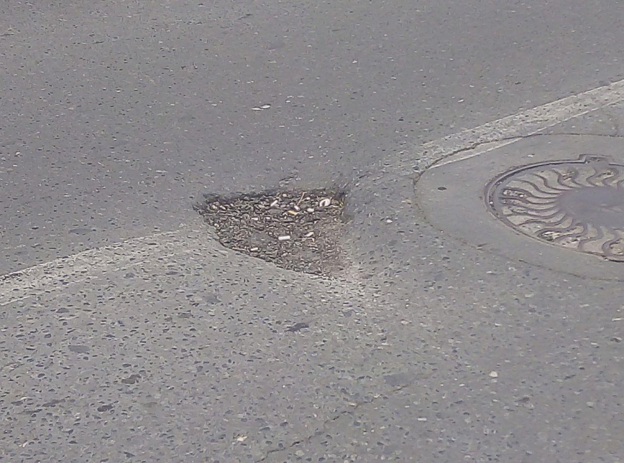 После нашей публикации яму, образовавшуюся рядом со смотровым колодцем, попытались устранить, отсыпав асфальтной крошкой. Временное восстановление безопасности проезда оказалось постоянным, достаточно быстро машины выбили материал из просадки и препятствие снова начало досаждать автолюбителям.