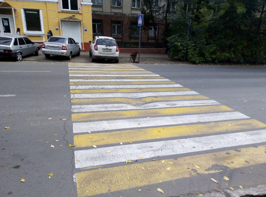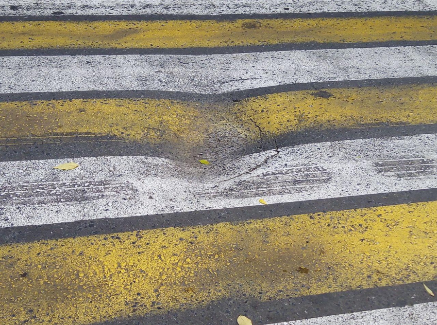 На пешеходном переходе через Вольскую, рядом с пересечением с улицей Ульяновской, образовалась просадка.