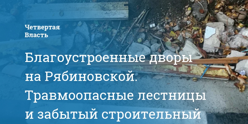 Благоустроенные дворы на Рябиновской. Травмоопасные лестницы и забытый строительный мусор