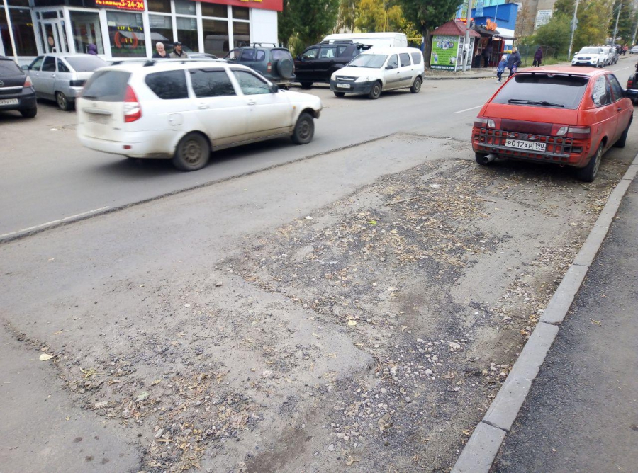 Незаасфальтированный отрезок дороги занимает в ширину всю полосу для движения в направлении улицы Генерала Захарова, из-за чего водители вынуждены объезжать препятствие по встречке.