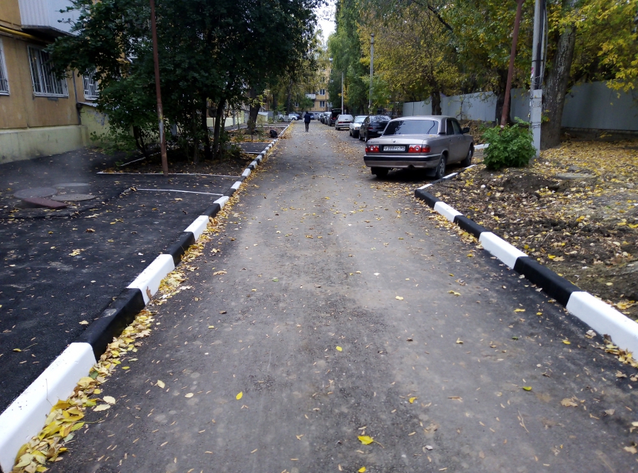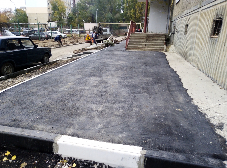Также стоит отметить, что, несмотря на погодные условия, оперативно и достаточно качественно были отремонтированы самые запоздалые из ремонтируемых дворов: территории у домов №123,125 и 127 по улице Чернышевского и №2, 4 по Шелковичной. Всего две недели назад подрядная организация приступила к установке бортового камня, но уже сейчас дворовая территория покрыта новым асфальтом.