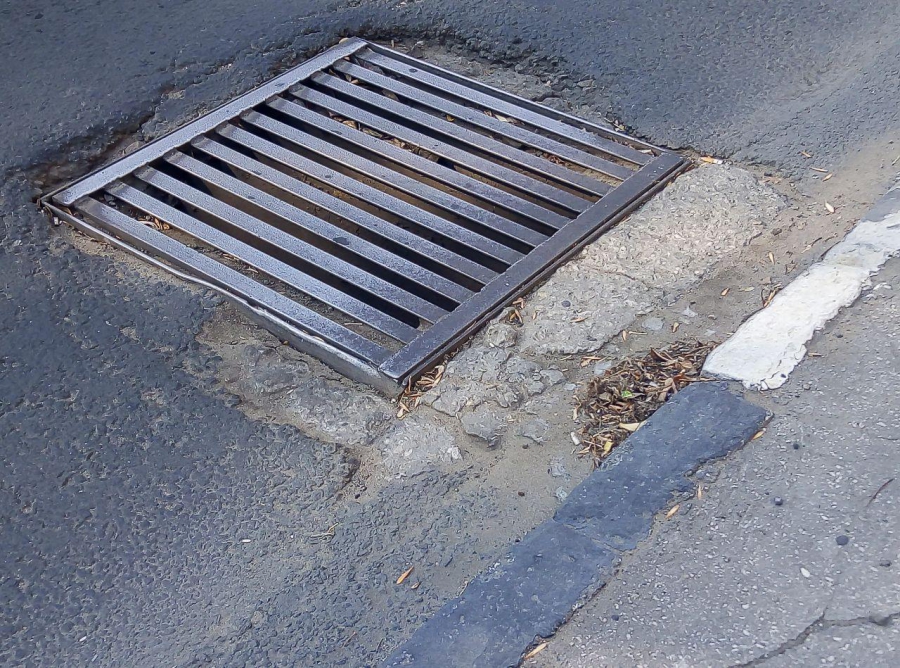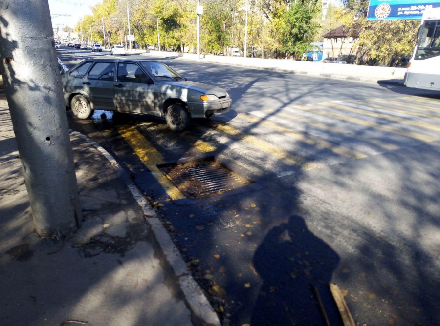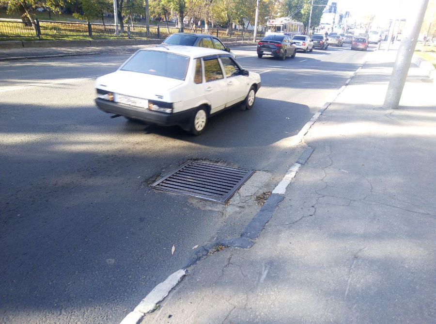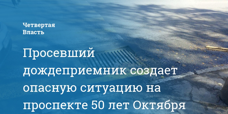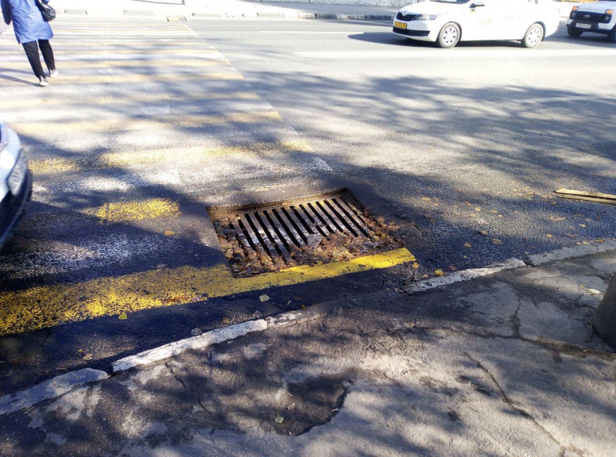 Просевший дождеприемник создает опасную ситуацию на проспекте 50 лет Октября