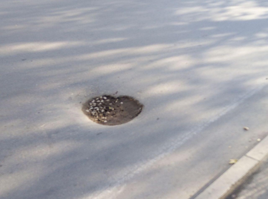 На улице Рахова, напротив школы №18, образовалась просадка, грозящая перерасти в провал.