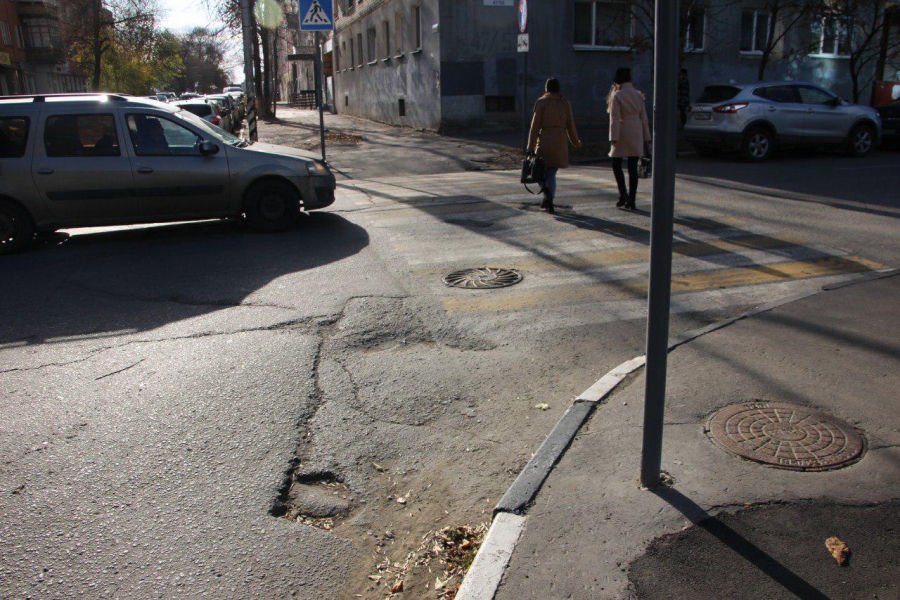 Пешеходные переходы на перекрестке улиц Первомайской и Октябрьской в Саратове уже давно представляют из себя смесь из просадок, выбоин и разрушающихся карт на месте вскрышных работ.