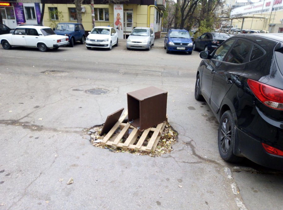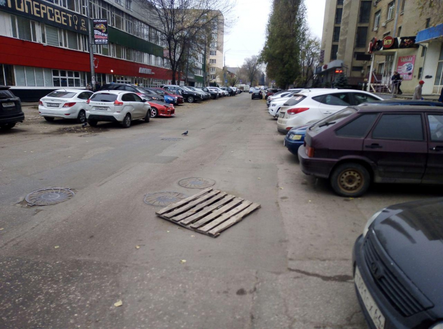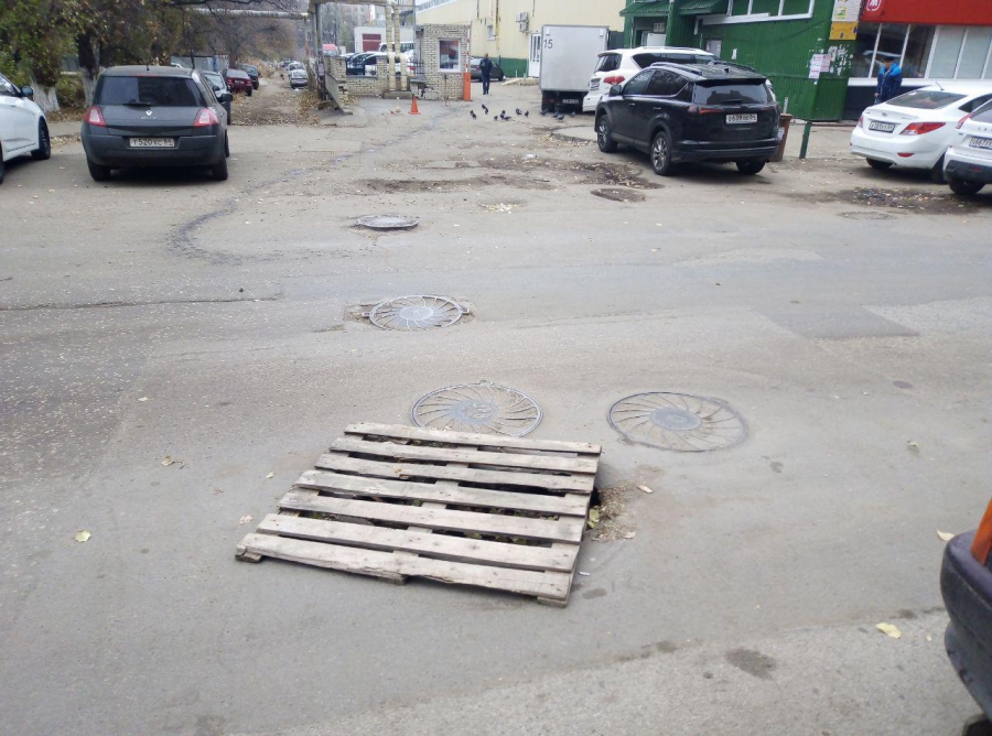 На улице Пугачева в Саратове, у дома №159, образовался провал, который местные жители прикрыли палетой. Наезда транспортного средства такое препятствие не выдержит, и, скорее, предупреждает водителей об опасности. Днем ранее яма была и вовсе не обозначена, что в темное время суток могло привести к серьезным повреждениям угодившего в нее автомобиля.