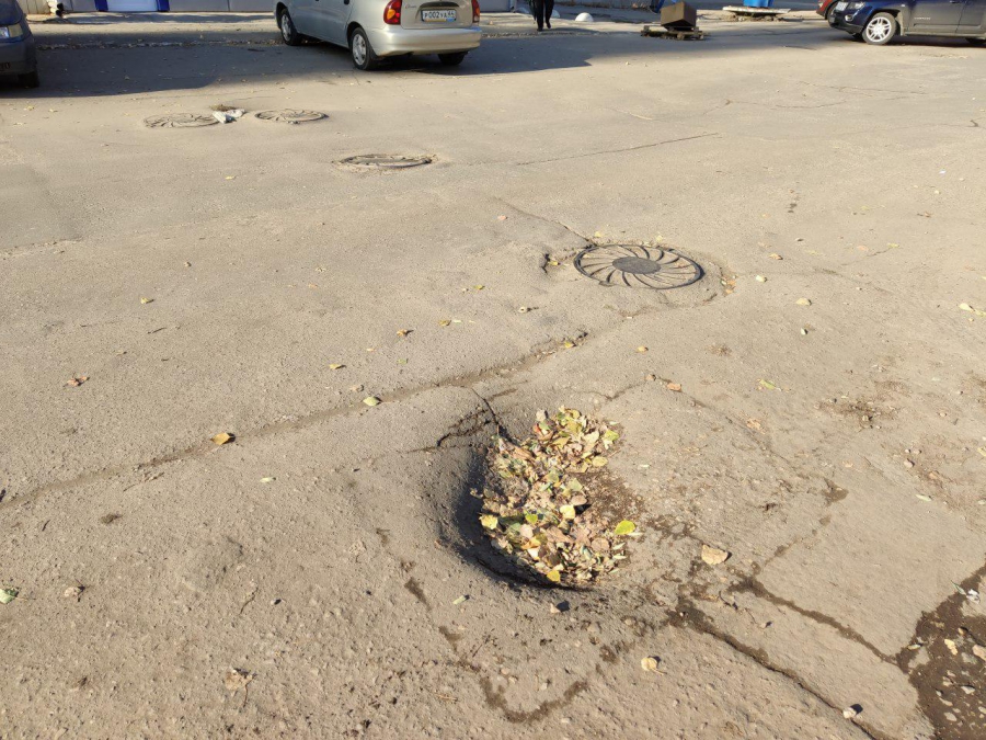 На противоположной стороне дороги также скоро грозит образоваться провал на месте глубокого проседания покрытия.