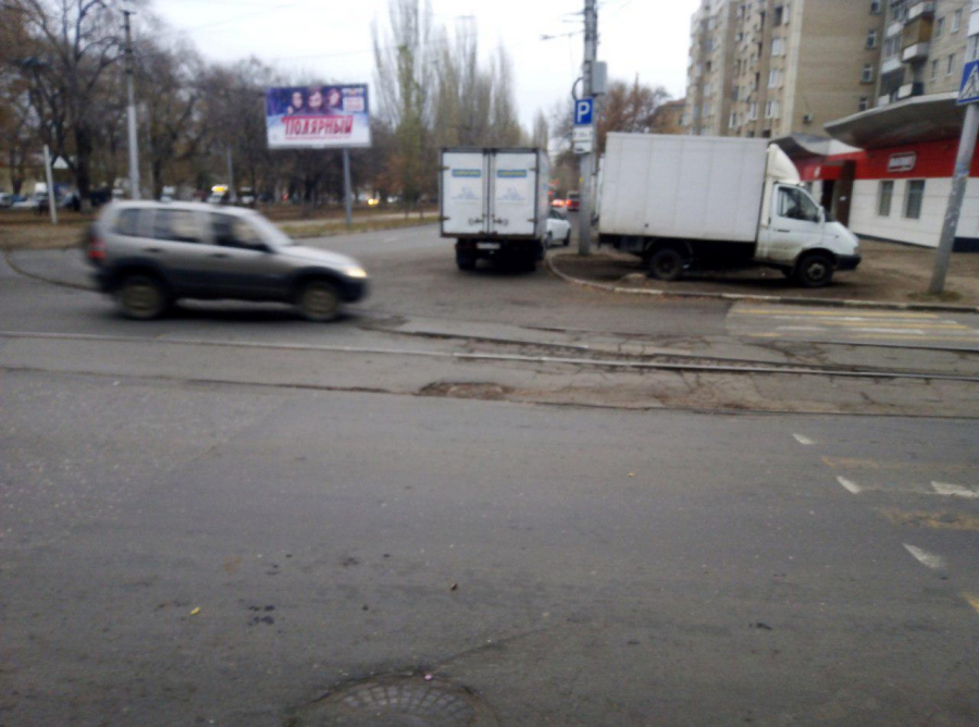 Выступающие над дорожным покрытием рельсы и образовавшиеся рядом с ними выбоины делают труднопроездой центральную часть дороги, заставляя водителей перестраиваться в соседние полосы на пешеходном переходе.