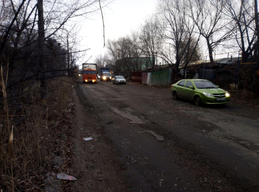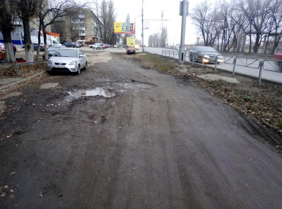 Разбитый участок дублера Московского шоссе протянулся на пару кварталов от кольца ВСО, и часто альтернативных подъездов к домам не существует.