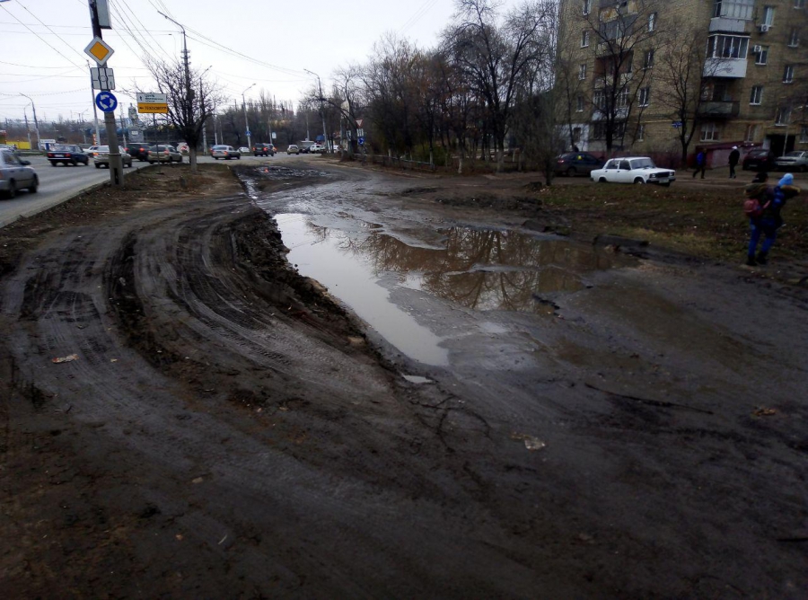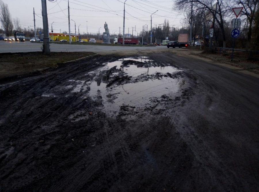 В некоторых местах заполненные грязью ямы водители вынуждены объезжать по зеленой зоне.