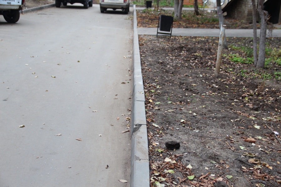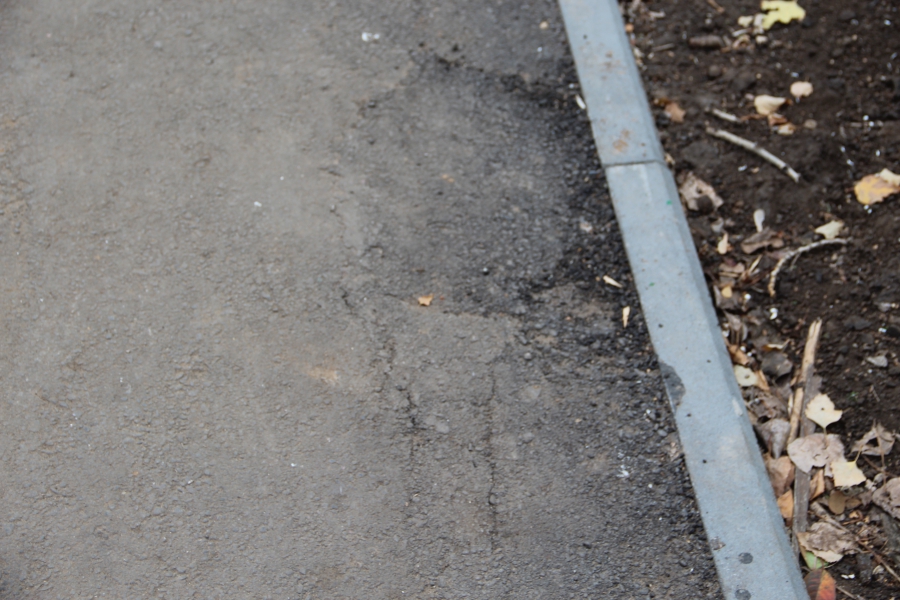 Не задался ремонт у ООО «Садор» и у дома №64 по улице Петровской. С торца дома на подъезде уже появилось разрушение покрытия, небольшая просадка с многочисленными трещинами. Просадками и трещинами отмечена пешеходная дорожка между домами №64 и №47 по Максима Горького. Борт на дворовой территории установлен криволинейно, на пешеходной дорожке у дома №45 по Максима Горького его и вовсе умудрились поставить то лицевой, то внутренней стороной наружу. Это фиксировалось сотрудниками «Дорожного контроля» во время совместного рейда с прокураторой.