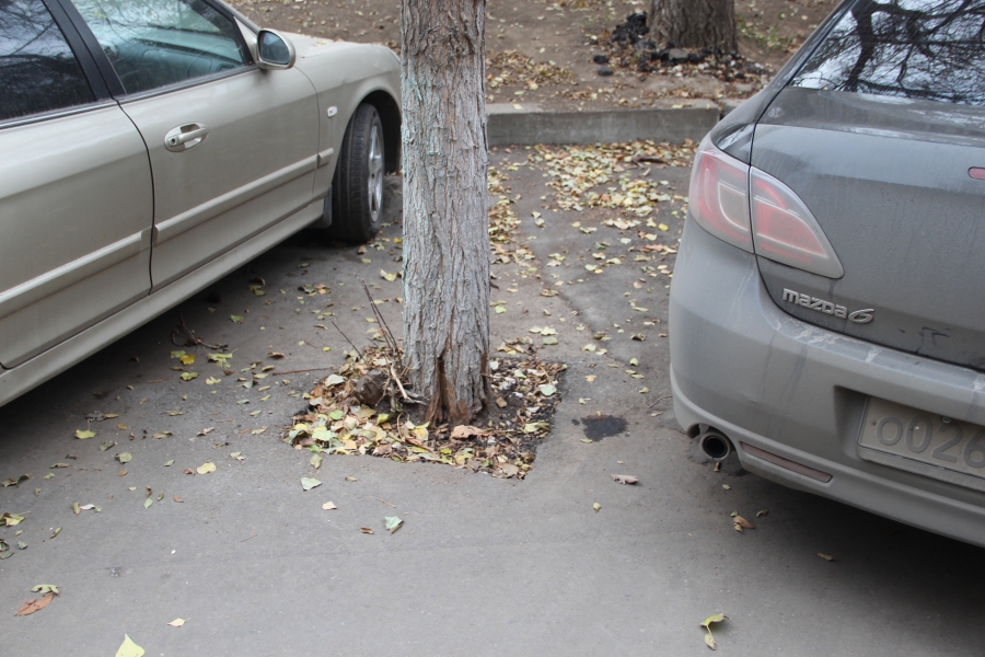 Похожая ситуация складывается у дома №13 по улице Максима Горького. У подъезда №6 наблюдается просадка, на стыке проезда и парковочной площадки образовалась впадина, борт установлен криволинейно и сильно поколот. К тому же в этом дворе в ходе ремонта заасфальтировали дерево, и только после неоднократного обращения жителей освободили от асфальтного плена, и то не до конца.