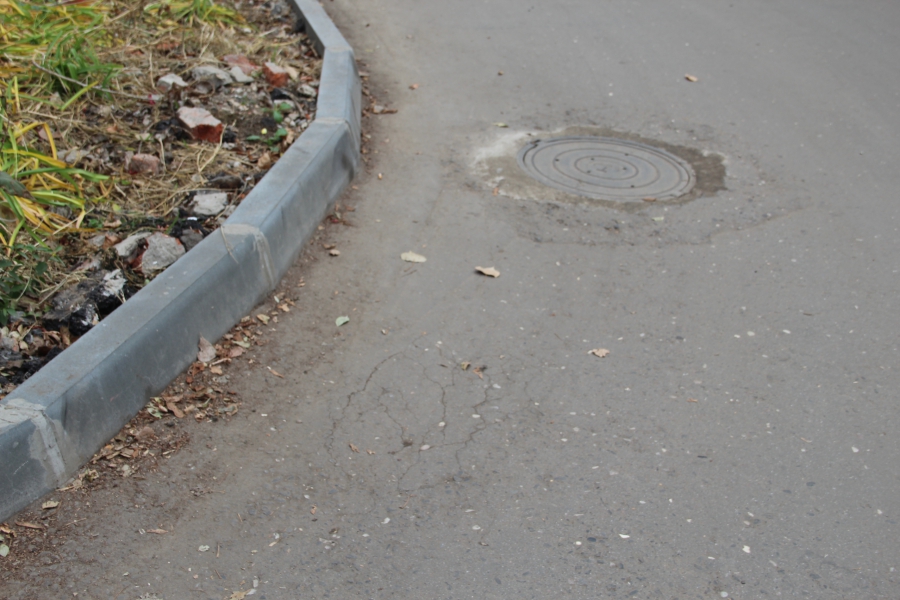 Действительно, во многих дворах уже появились латки на отремонтированном покрытии, при этом и они начали разрушаться. Ярким примером здесь служит двор дома №66 по улице Колотилова. На входных группах подъездов №4 и 5 появились рядом со смотровыми колодцами просадки, устранить их попытались, уложив заплатку из асфальта, но остановить разрушения не получилось. Проседание покрытия продолжилось, к тому же по краям просадки уже пошли трещины, и входные группы находятся в ненормативном состоянии. Также в этом дворе приняли криволинейно установленный бордюр, где уже появилось несколько разбитых бортов.